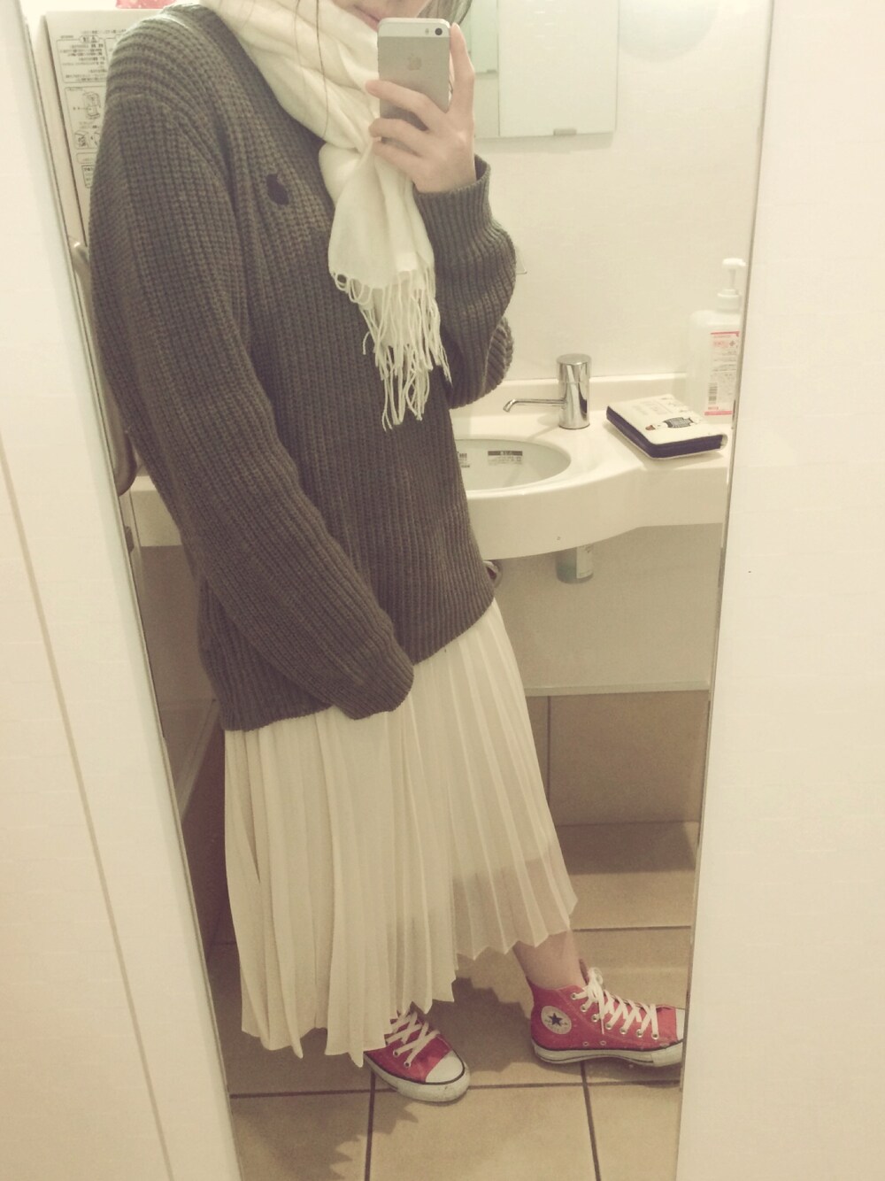 こんばんは、勤労感謝の日ですね。 今日見た店員さんみんなに感謝。 チチカカ 畦編みニットプルオーバー CONVERSE CANVAS ALL STAR HI 23.5 マフラーとプリーツスカートは白です。 バッグは黒リュックです。 📷 慰安旅行で長野と群馬に行きました。 紅葉が綺麗だったので、おすそ分けです🍁🍁🍁