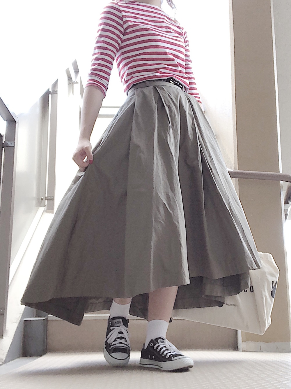 murayama ayano ⚫︎のスカート「DOORS タックロングスカート」を使ったコーディネート