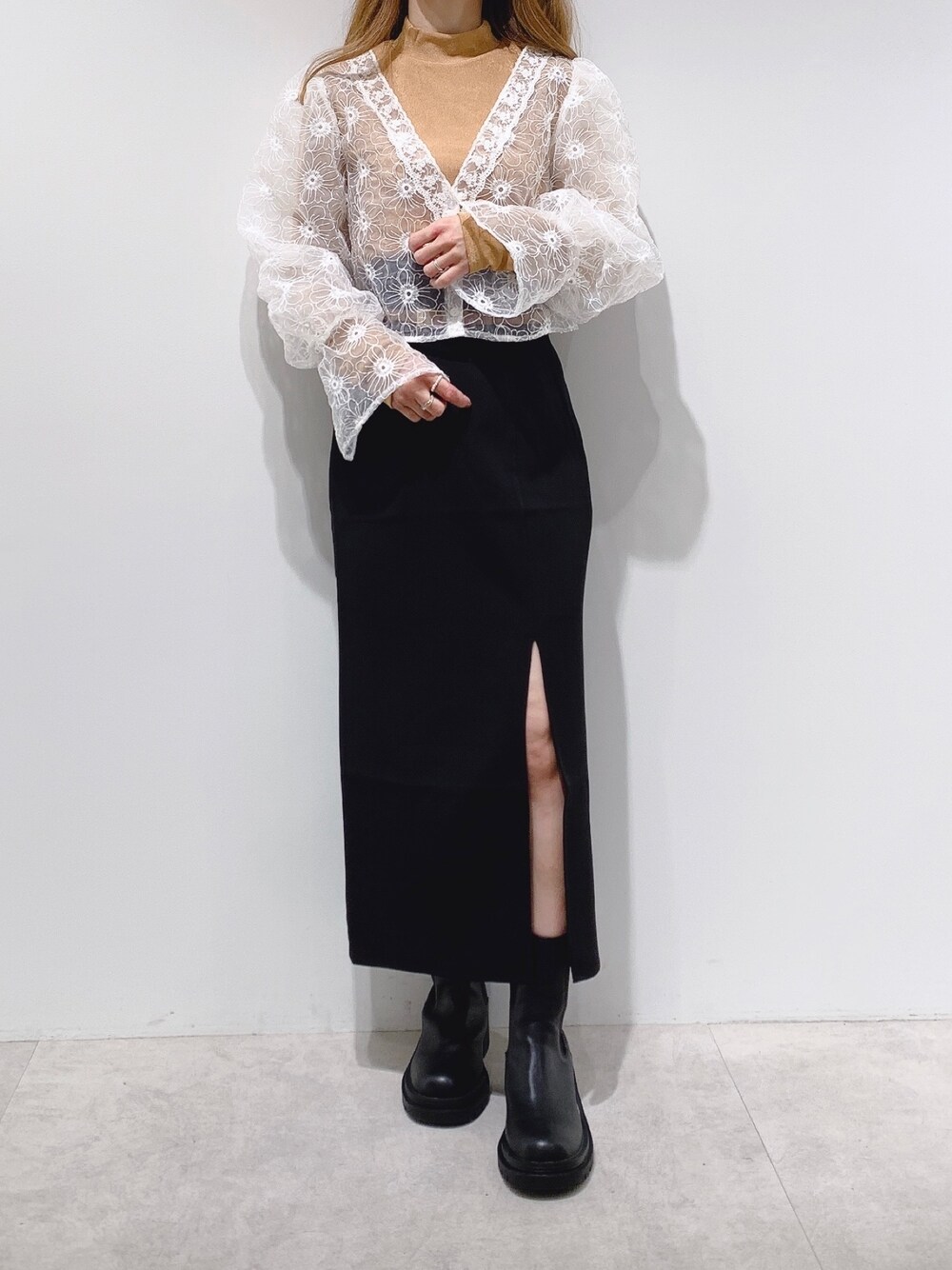 aya_shapo(one after another NICE CLAUP)のシャツ/ブラウス「ハイネックインナーセット刺繍ブラウス」を使ったコーディネート