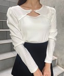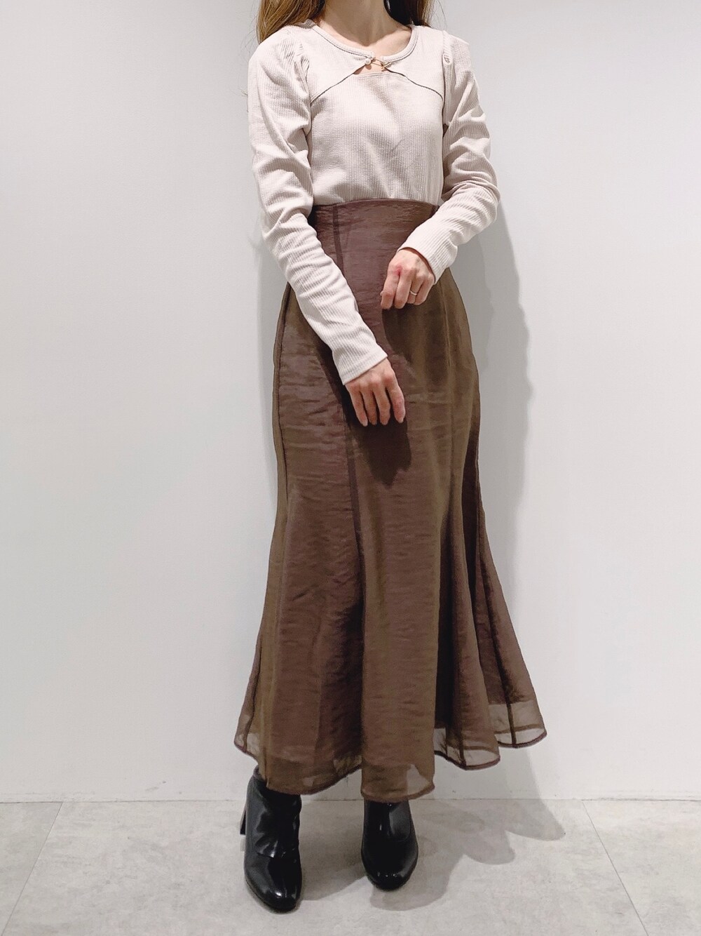 aya_shapo(one after another NICE CLAUP)のTシャツ/カットソー「パールのワンポイントが華やか。デザインテレコトップス」を使ったコーディネート