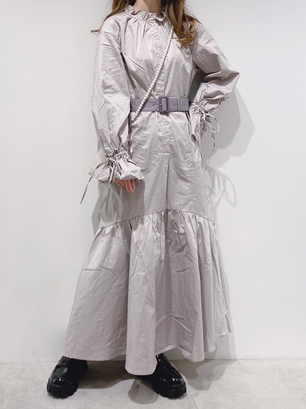 aya_shapo(one after another NICE CLAUP)のワンピース「【スタッフ考案アイテム】配色ベルトロングワンピース」を使ったコーディネート