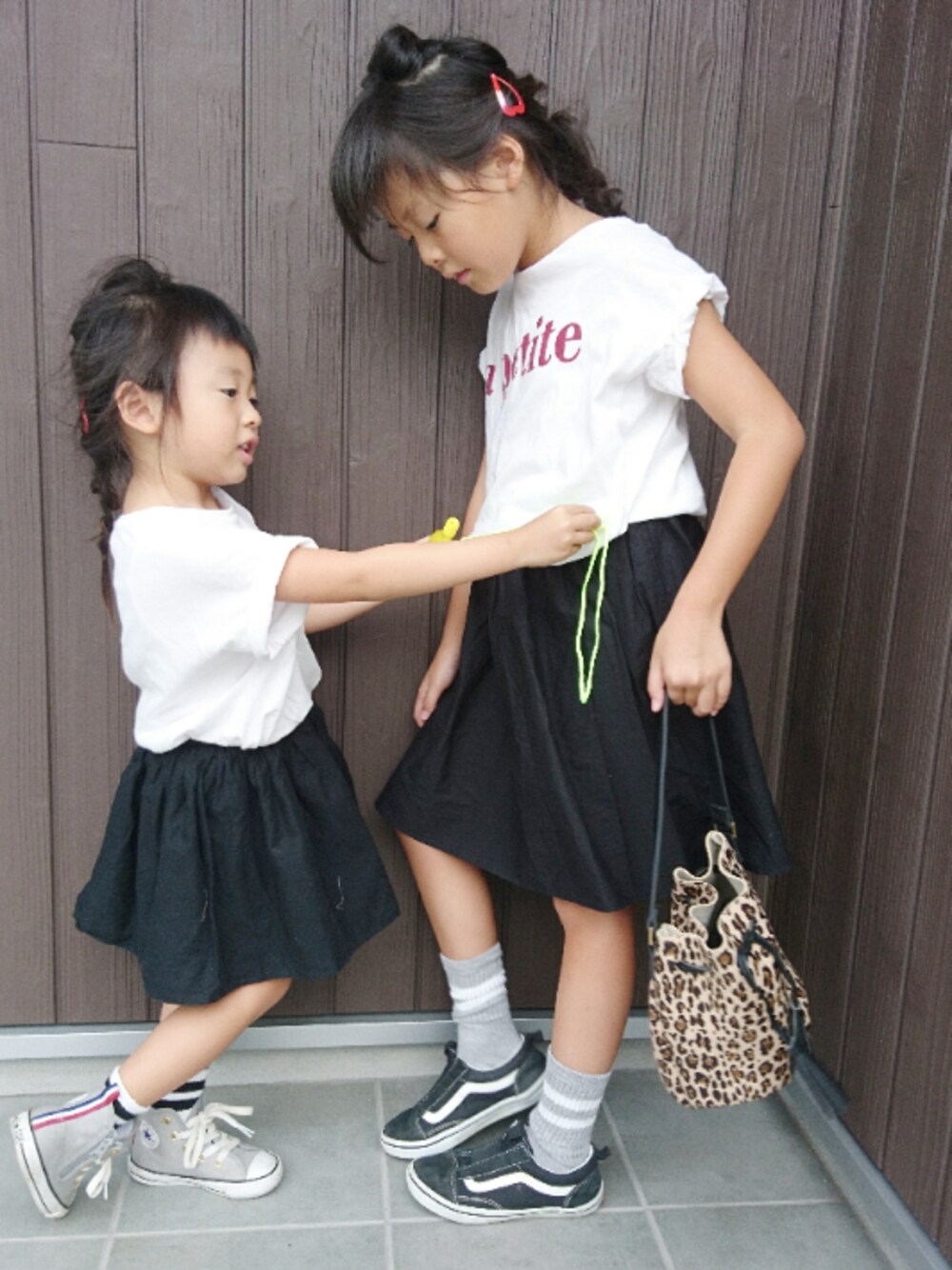 おはようございます🙂 同じ県でも台風の被害があってびっくりしています😭 隣の県はもっと大変そうです😭 姉妹でモノトーンです👧👧