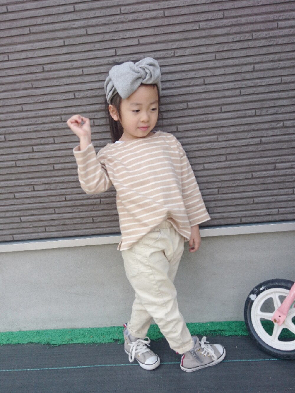 skhanaのTシャツ/カットソー「ボ-ダ-ドロップショルダ-プルオ-バ-」を使ったコーディネート