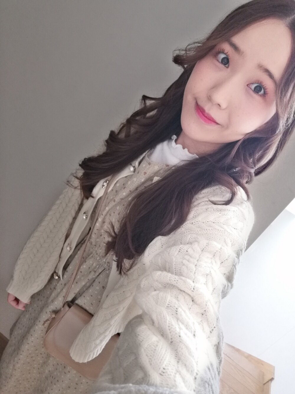 ayamoreのカーディガン/ボレロ「レトロ丸首ケーブルニットボリューム袖カーディガン【ZOZOTOWN限定アイテム】」を使ったコーディネート