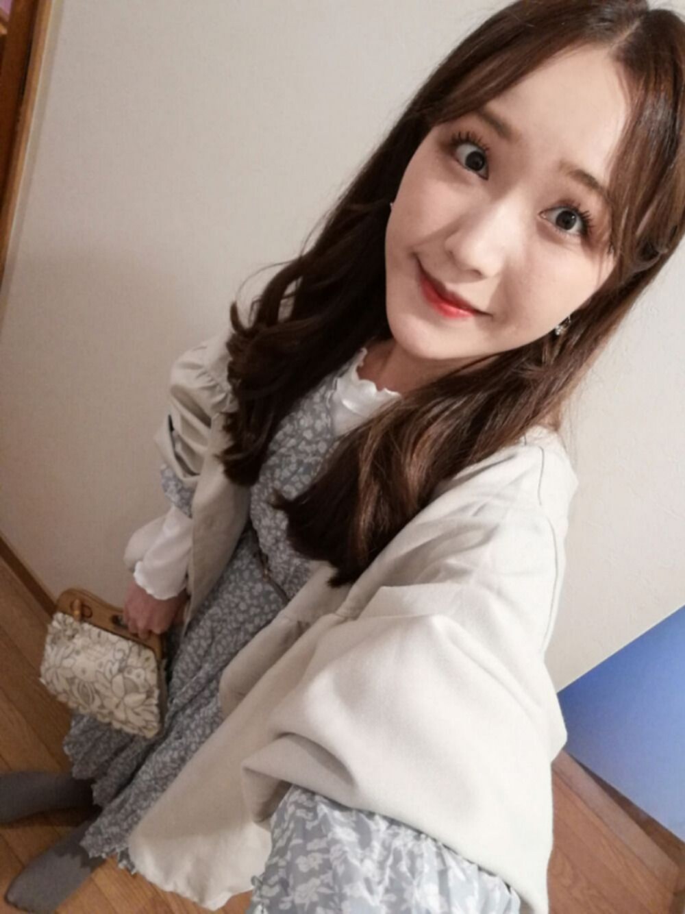 アプレジュールの爽やかな色味のワンピースにホワイトのインナーと古着のバッグを合わせて初夏っぽく◎ 持ち手の小さいバッグですが、お気に入り。 ベルトせずにゆるっと着るコーデも今度考えてみよう*