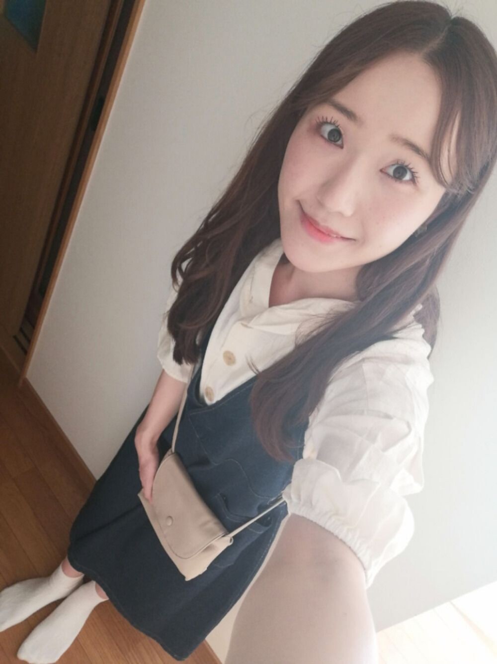 ゾゾユーズドで購入した古着デニムジャンスカにエヘカのフード付きトップスをインして、カジュアルコーデ* 大きめのベージュスニーカーを履きました。