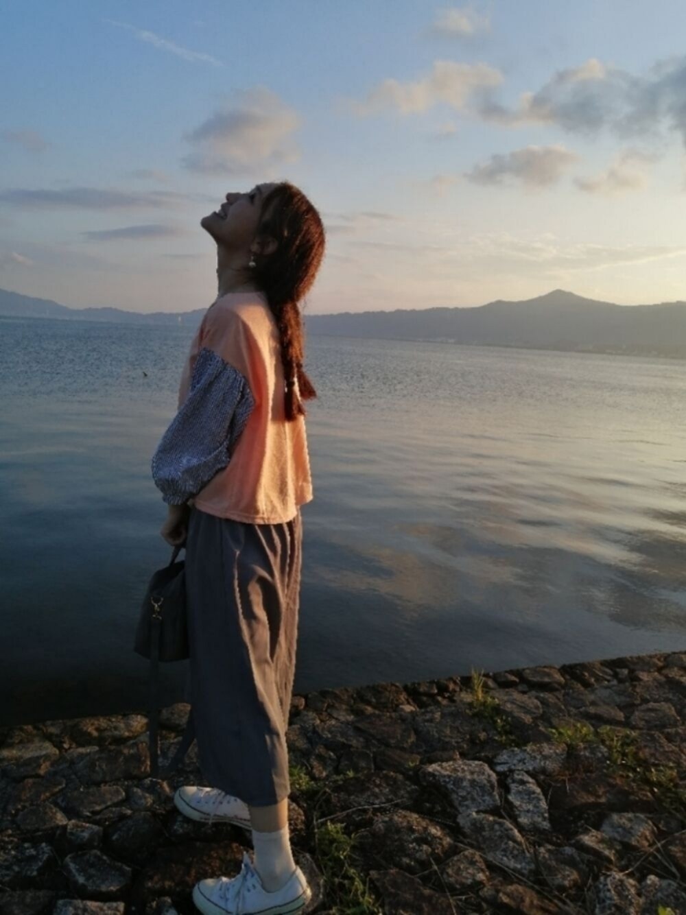 スーパーで激安で売っていた面白ドッキングワンピにコンバースで、明るいカジュアルコーデしてみました◎ 自分ではしない色合わせが可愛いなぁと思って購入。 時間がなくて、みつあみにしました。*