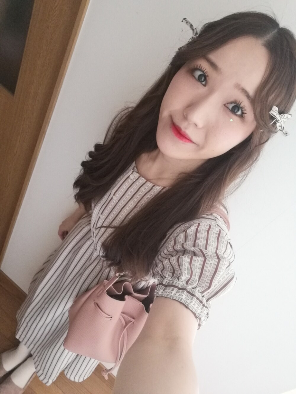 エヘカソポの花柄ストライプワンピースは他に見ないデザインでお気に入りです! 服に合わせて、自作のリボンピンをつけてみましたが、、さすがに外出先では無理ということで鞄に忍ばせて終わりました。笑 猫かわいかった〜。