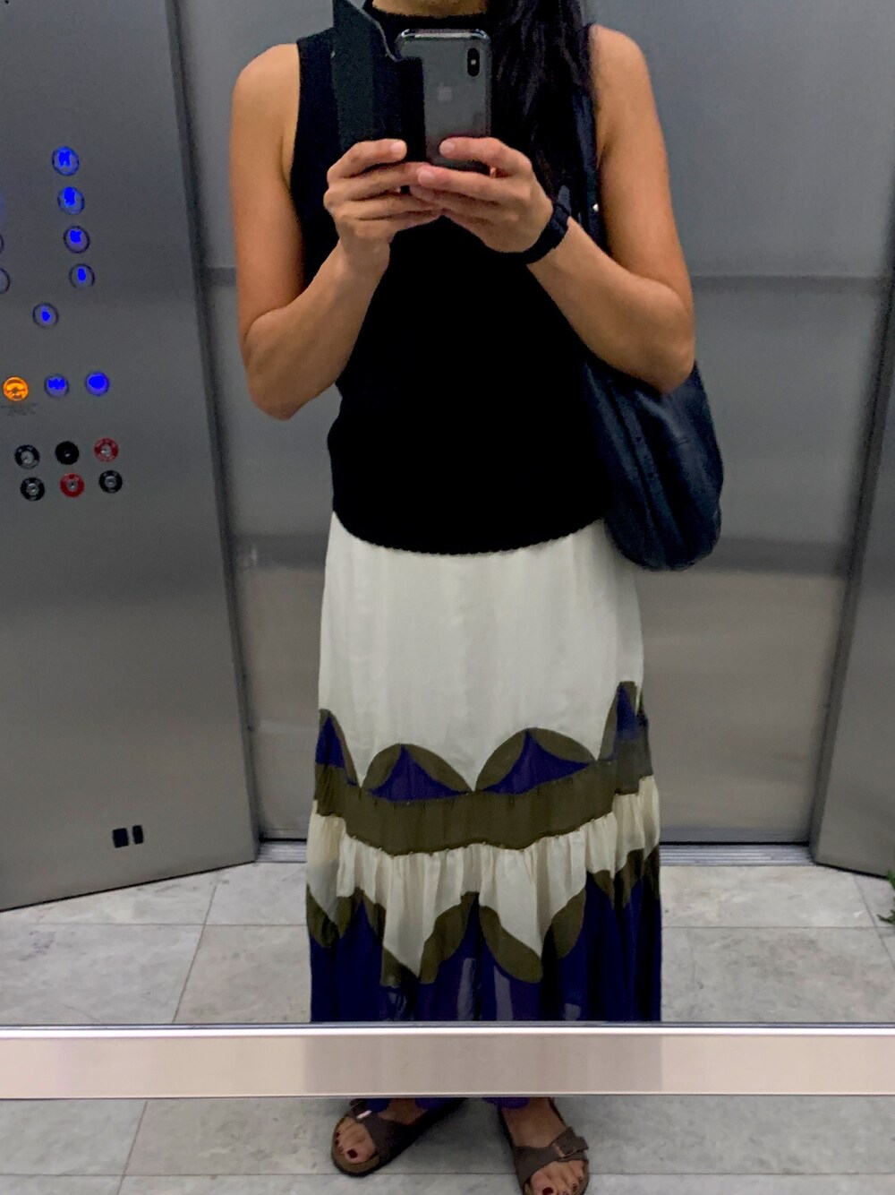 My favorite skirt, probably bought this 10years ago. UNIQLO black top is absolutely useful. Keep simple,easy, cozy and comfy. 10年ぐらい前に買ったスカートを未だに履いています。このハイネックのタンクトップはとても使いやすいのになぜ数枚まとめ買いしなかったのか後悔。シンプルで使いやすいアイテムは複数購入することをお勧めします。ローカルブランドのjuju&coの黒トート。シンプルで使いやすいアイテム。たまたまデザイナー兼オーナーさんとカフェで遭遇。このバックを持っていて話しかけられました。