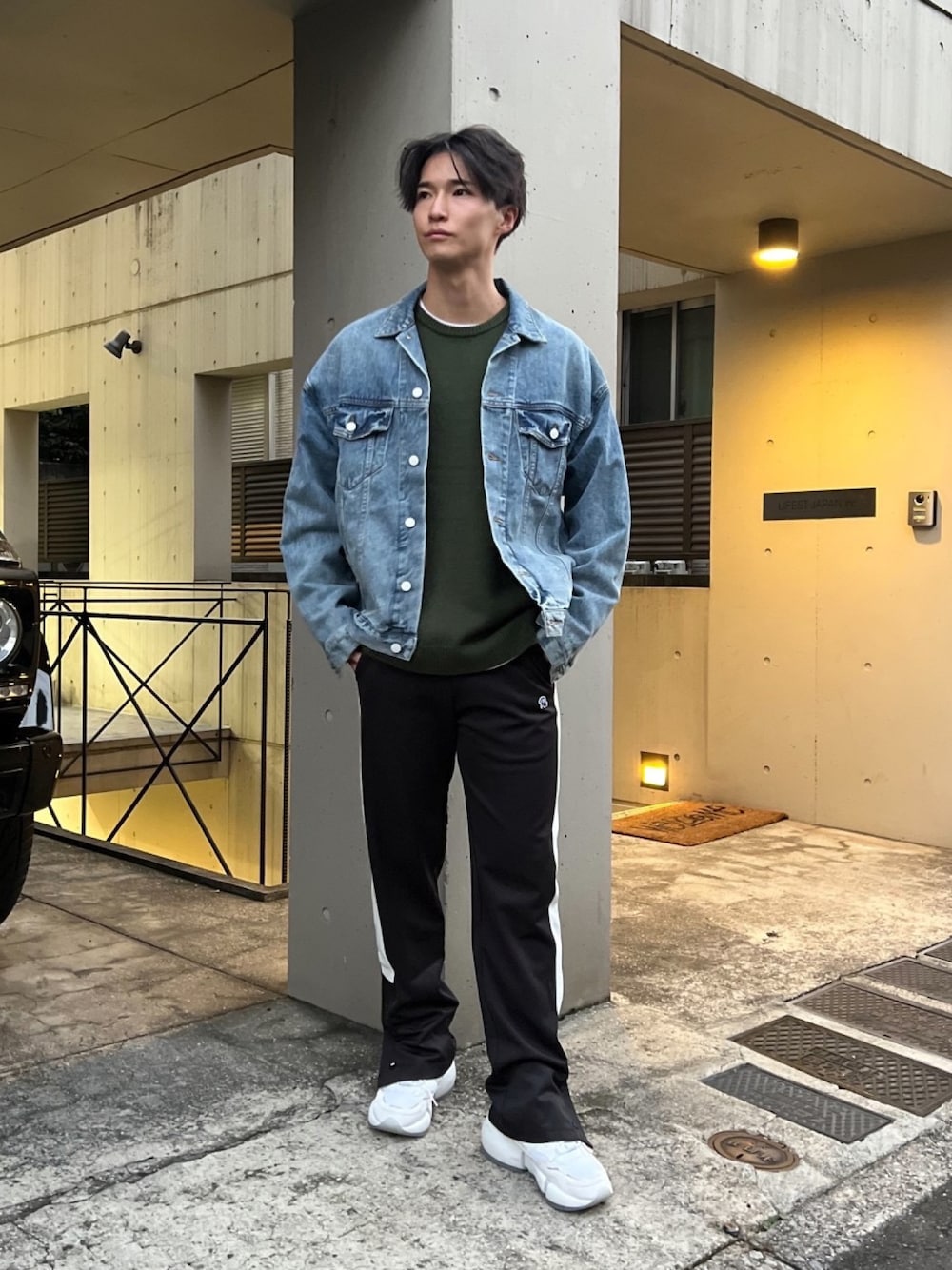 こんにちは😃 今日はビッグシルエットのデニムジャケットにトラックパンツを合わせカジュアルに仕上げてみました✨ トラックパンツは脚のラインが綺麗に見えてスタイルアップ効果がありますね🤘🏿