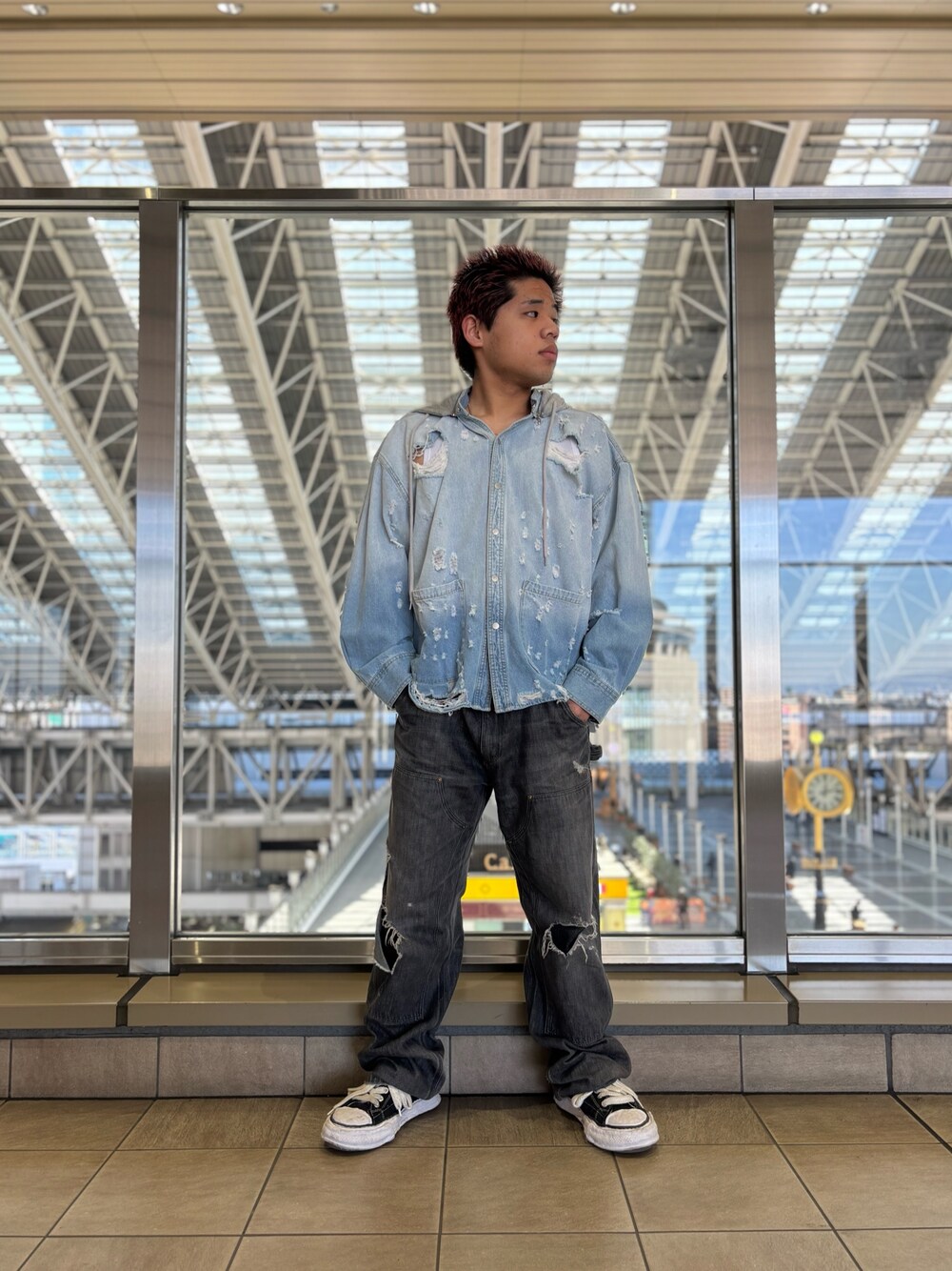 本日は Danke schonのダメージジャケットです! フード部分が取り外しでき取り外すとシャツとしても使えるのでかなり実用性が高い商品になっております! また、ダメージ系のワイドデニムとも相性抜群です! 是非着用してみてください!