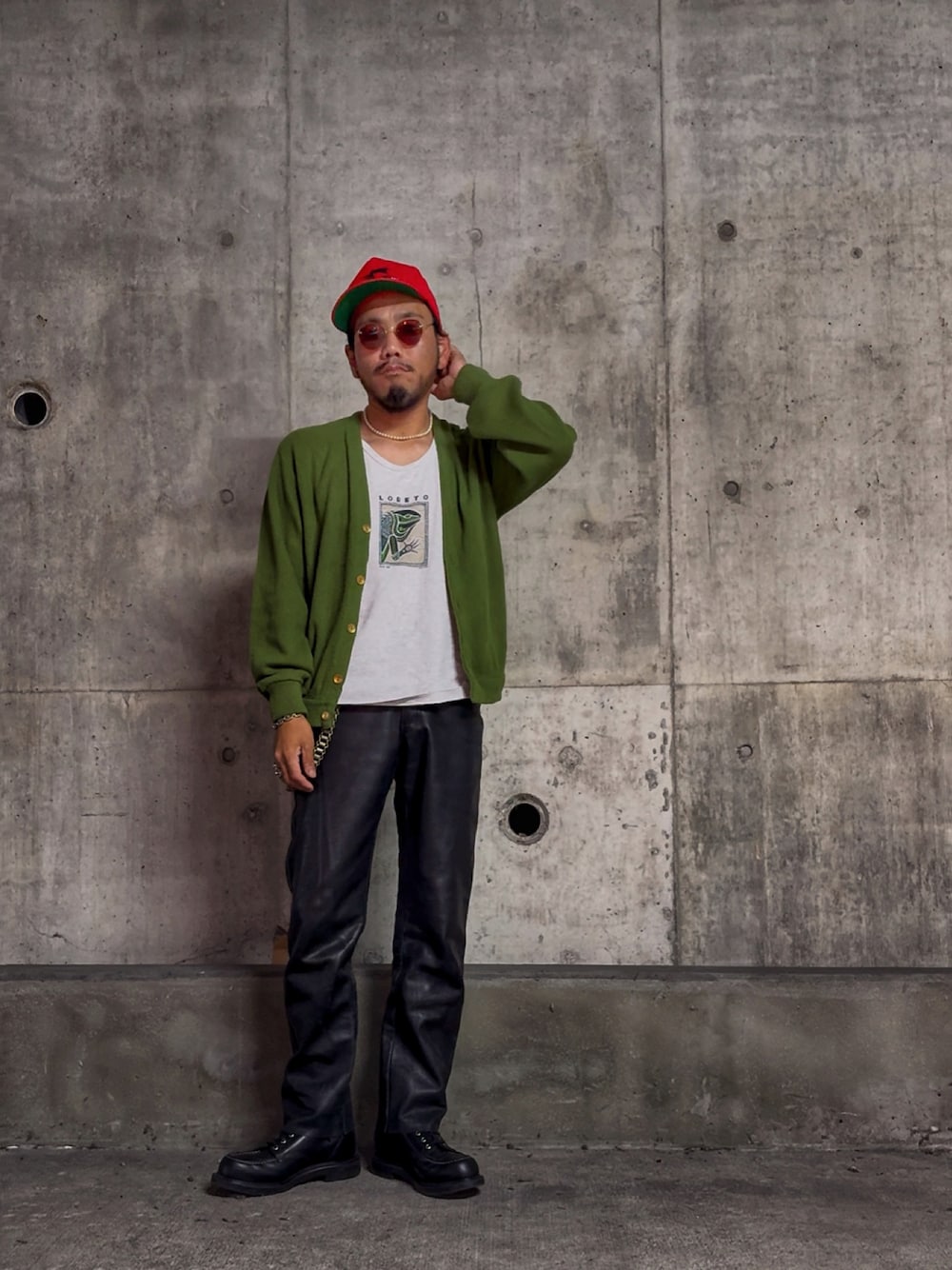 2025.10.27 やっと出会えたマイサイズUSのレザーパンツ😆🇺🇸 80'sショットでクオリティも言う事なし! ま、出会いも買ったのも去年くらいなんだけどね笑 今季はレザーパンツもっと穿いていこう! ハードだからピスタチオとレッドでソフトにしたつもり笑 11月突入ですね〜 もうそろそろ今年も終わるのか、よろしくお願いします!