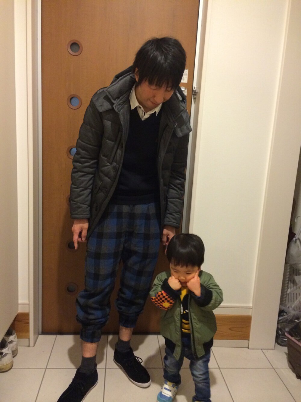 家族で、お買い物から帰宅🏠 息子と二人で今日のコーデ(≧∇≦)