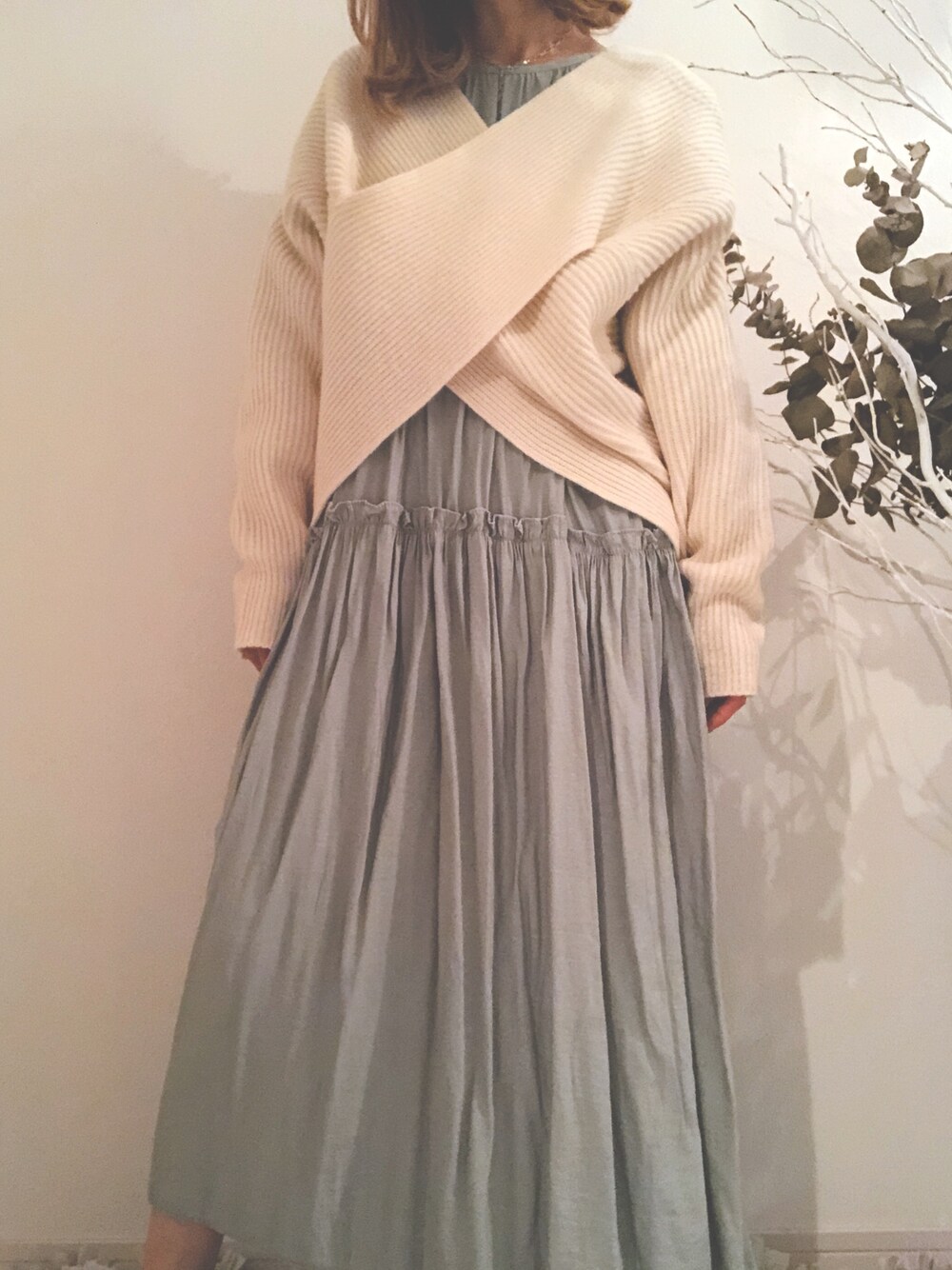 おはようございます😊 いつも良いね☺️保存✨フォロー💓 ありがとうございます☺️💓 人気インスタショップのvintageroom.701のニットはなかなかない形で Tシャツにデニムというラフなものに重ねてもこのようにワンピースと重ねても 表情が変わってめちゃくちゃお気に入りです☺️ 大好きなミントグリーンで今日も ハッピーな1日になりそうです🎄