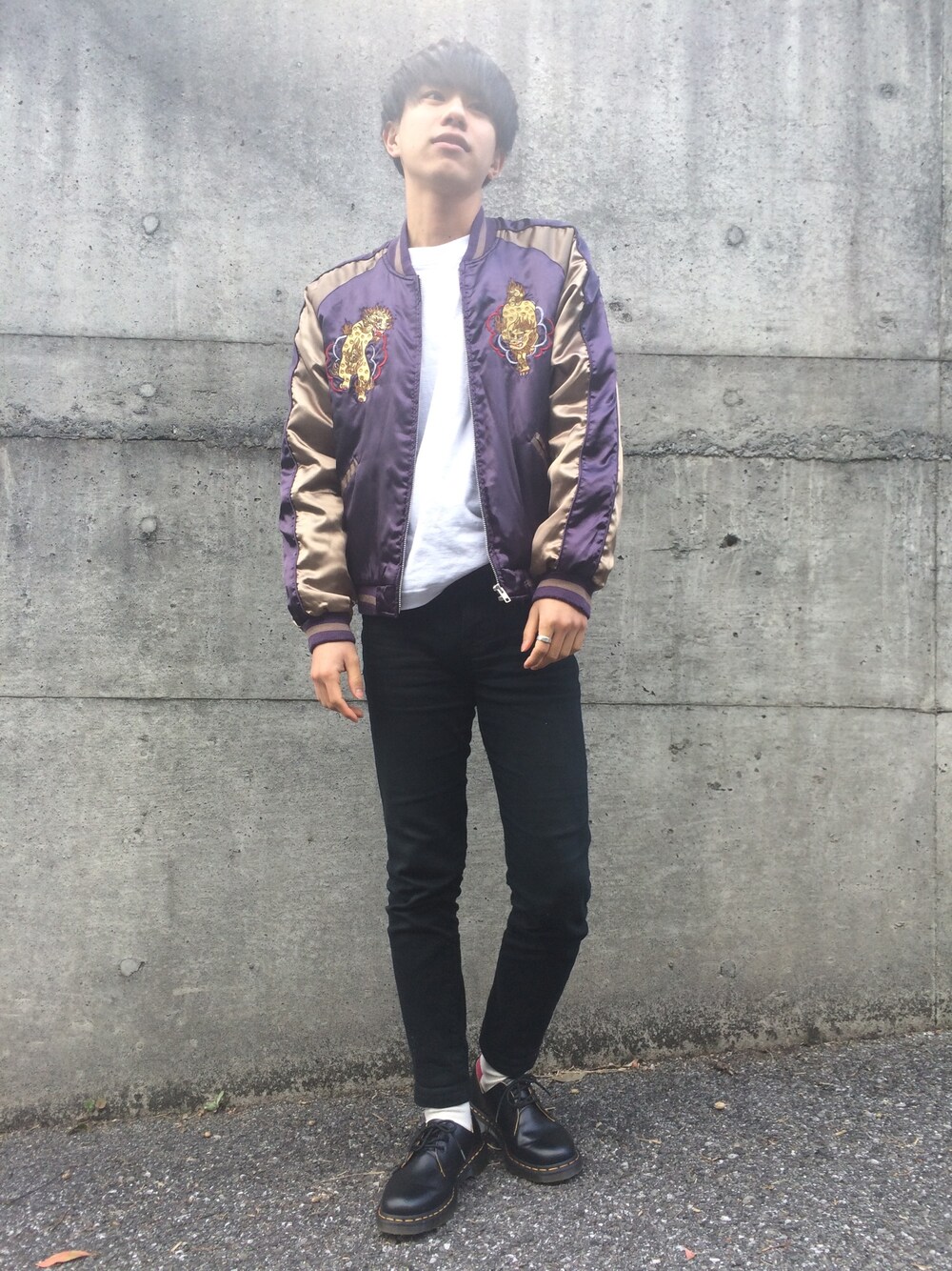 こんばんは♪ 今日の天気は雨です。 写真は撮り溜めてたやつなんで晴れてますけど笑 今回はちょっと変化球でスカジャンを着てみました! トップスはEDWINの白のスウェットです💫 スカジャン、いいですね〜😊 今はスカジャンをいかにカッコよく着るかを研究中です😂 もう1着くらい欲しいんで明日は新しいスカジャンを探す旅に出ます。 ではでは👀💫