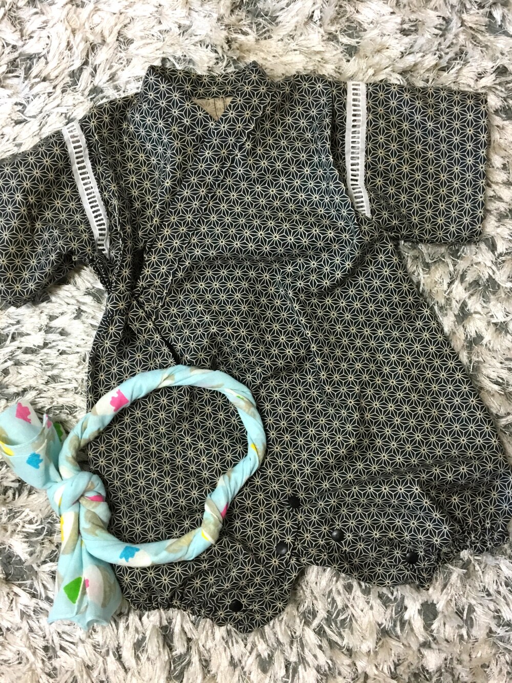 振り返りpic. ハンドメイドしたロンパース甚平さん。 あんまり赤ちゃん向けの渋い柄ってないので作りました。 パパの浴衣の柄ともリンクしてて可愛かったです♪