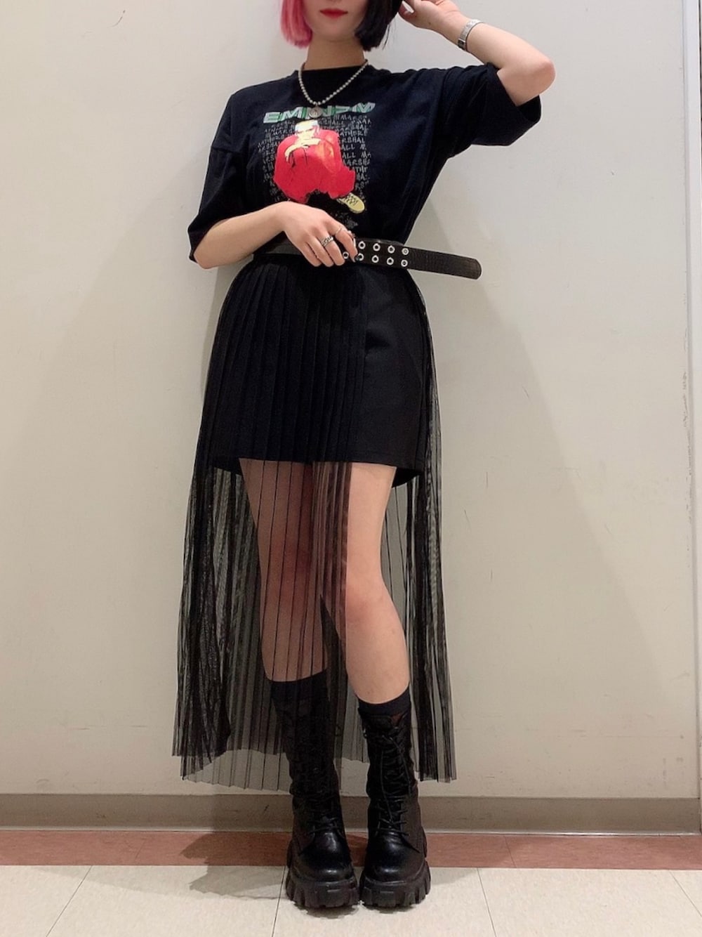 WEGO/パイピングサーモベレー/¥1,759(税込) WEGO/EMINEM|別注Tシャツ/¥2,199(税込) WEGO/型押しハトメベルト/¥1,099(税込) WEGO/チュールレイヤードロングスカート/¥3,299(税込) ※↑記載価格は定価の為、価格変動ございます。 InstaプロフィールのURLから着用商品購入可能です☺︎ 【Instagram】__ogew154cm.__