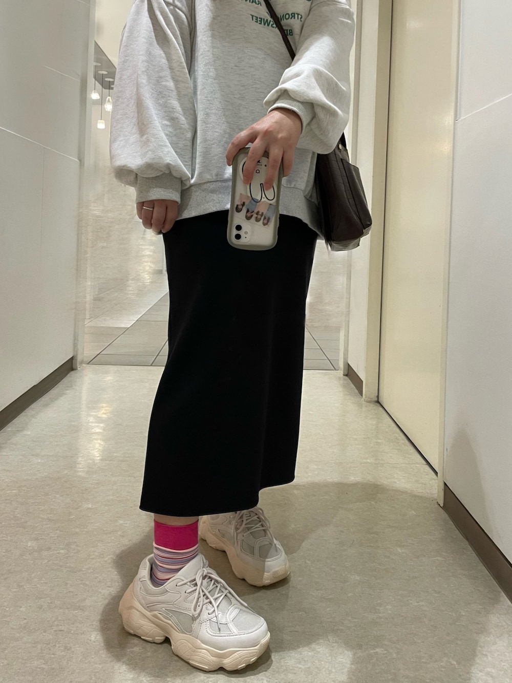 ✿ ユニクロのスカートが天才 🖤ˊ˗ ストレッチが効いてて履き心地最高だし Iラインだから細見えするしで大正解 🫶🏻 可愛い靴下を集めるのにハマってる私は とっても可愛いピンクボーダーソックスに 出会えてシアワセです 🌸🌸 グレイルのダッドスニーカーも 安いのにめちゃくちゃ履きやすくて楽 👟◎ ラクしたい日のコーデでした 𓂃 𓈒𓏸
