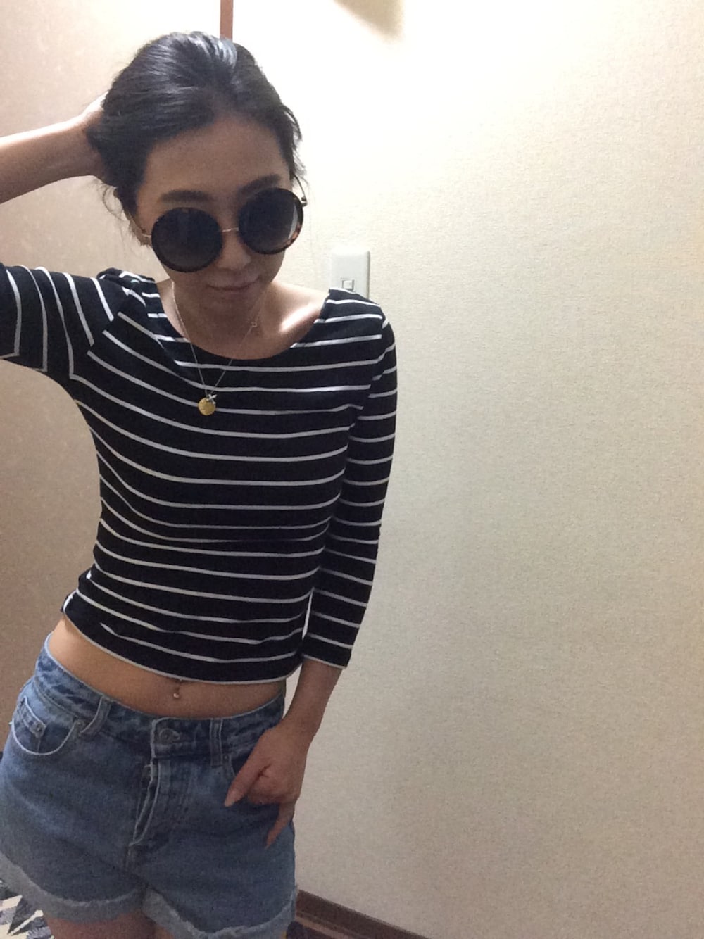 どうも、私です。 まさかのボーダーです。 でも私は無地派です! I♡無地 です。 どうでもよくてごめんなさい。 どうでもいいついでに、ショートパンツのボタンを一番上だけして他は全開で1時間くらいすまして歩いてました( ̄▽ ̄)目撃した方が居たら申し訳ないです。ごめんなさい。
