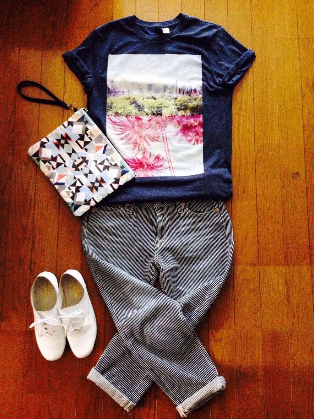 ヒッコリーパンツに合うのが旦那のTシャツしかなかったw 袖をまくると少し二の腕が細く見える気がするので、メンズTシャツを着る時はいつもそうしてます( ⁼̴̀꒳⁼̴́ )✧ 最近、カジュアルすぎるかな?