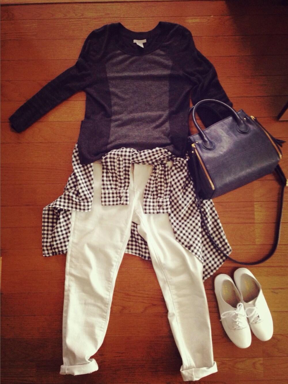 ちょっと分かりづらいけど、パンツはヒッコリーです。 これでも少し汗ばむ感じだったなー ニット、もう少し春っぽい方が良かったかな?