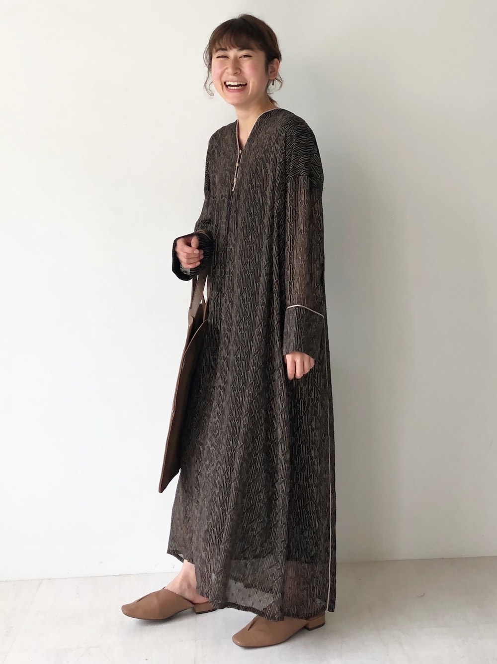 ブラックxブラウンで 早くカフタンワンピース1枚で歩きたい!
