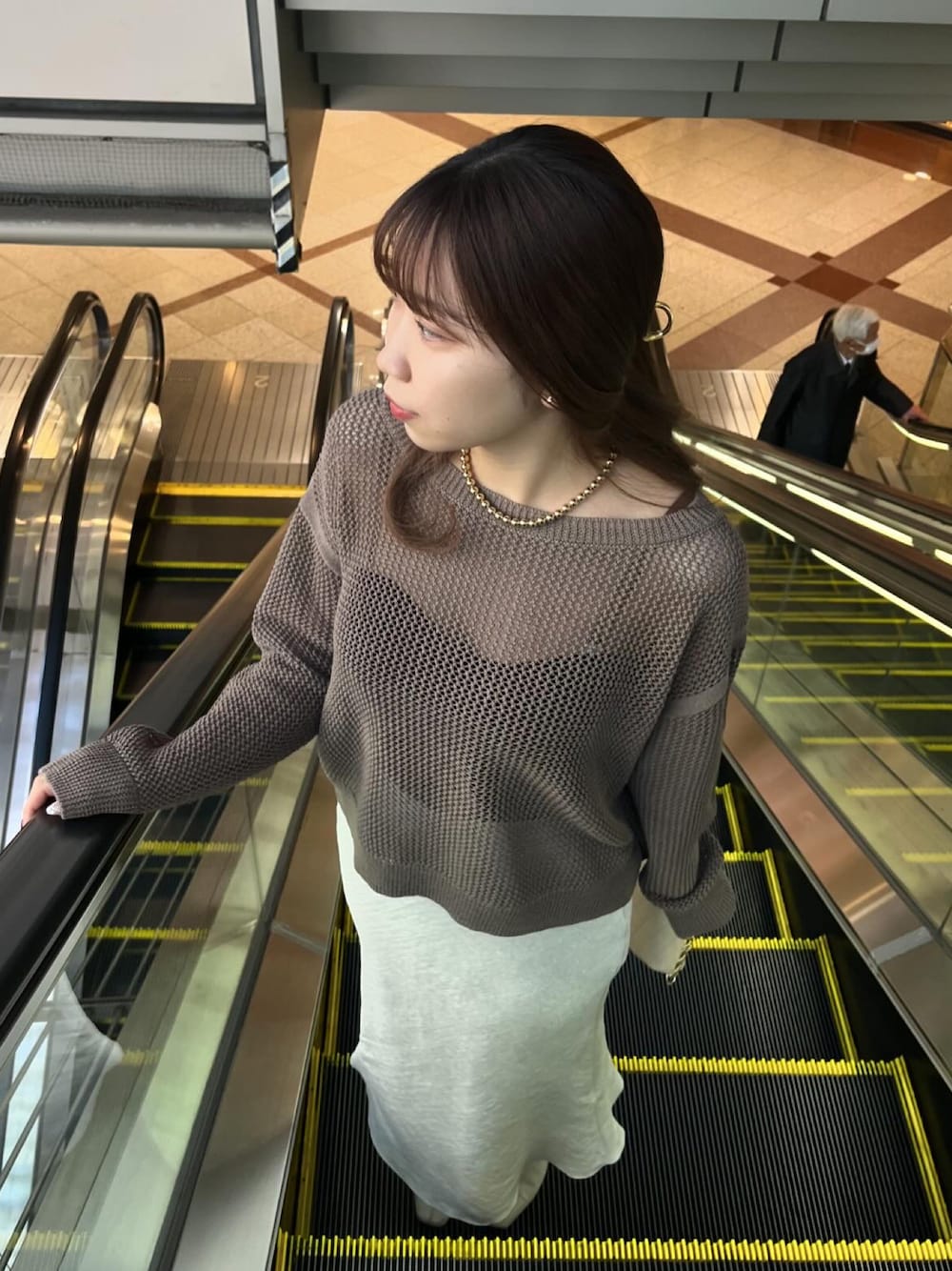 万能メッシュニット🧶 デニムでカジュアルコーデも好きだけど サテンスカートでキレイめコーデも🪄🤍 1着持っておくと便利なニットです👌🏻 ̖́-