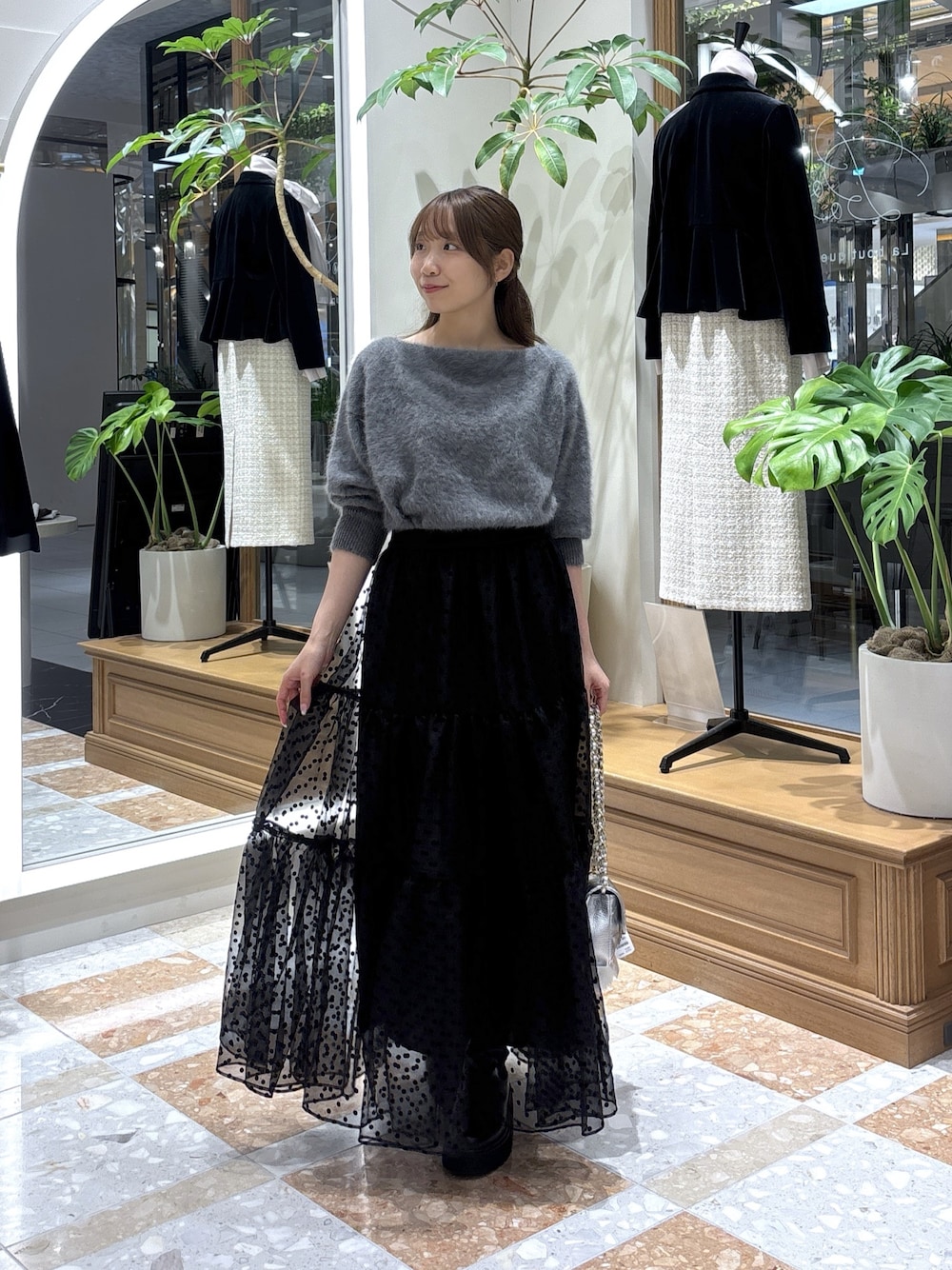 ayaka(La boutique BonBon 有楽町マルイ店)のニット/セーター「【今すぐお届け!・miki監修】ヘアリーウールカシミヤ混オフショルニット」を使ったコーディネート