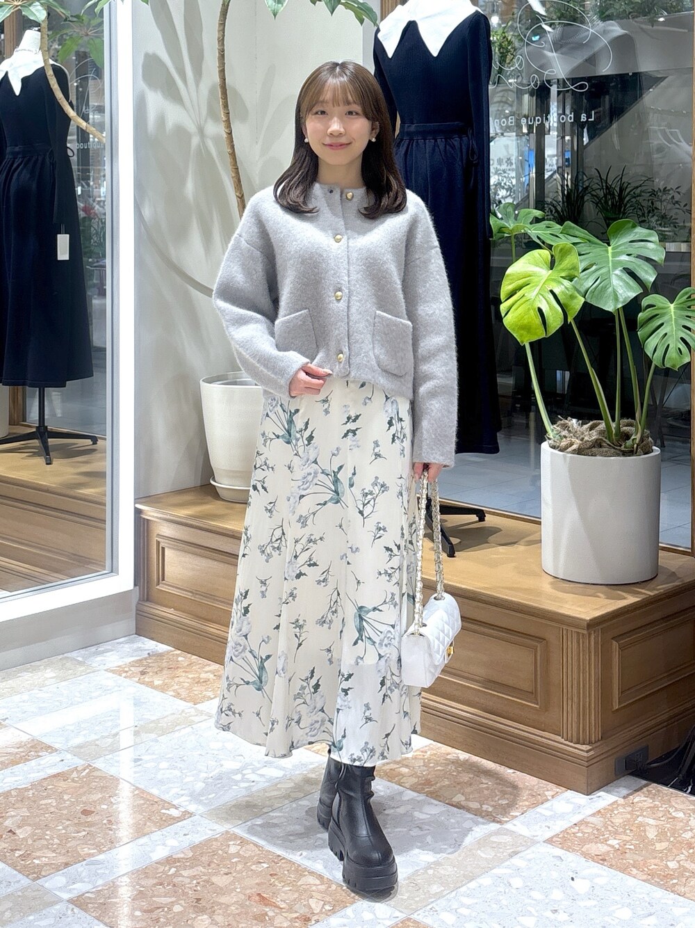 ayaka(La boutique BonBon 有楽町マルイ店)のノーカラージャケット「【春まで使える!・着回し力抜群】ハイクオリティウール接結ジャケットカーディガン」を使ったコーディネート