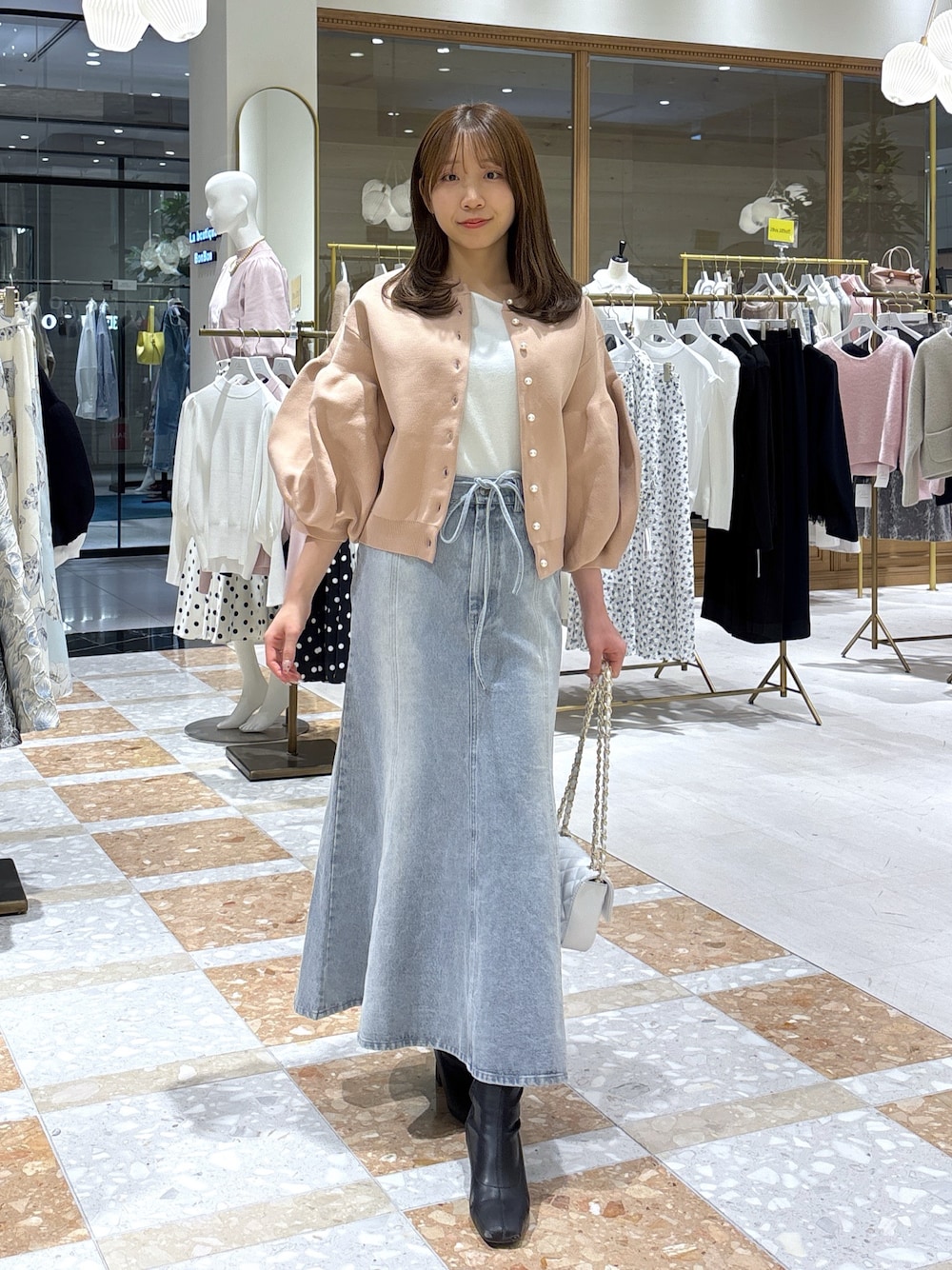 ayaka(La boutique BonBon 有楽町マルイ店)のカーディガン/ボレロ「【名品】お袖ぽわんパールニットカーディガン」を使ったコーディネート