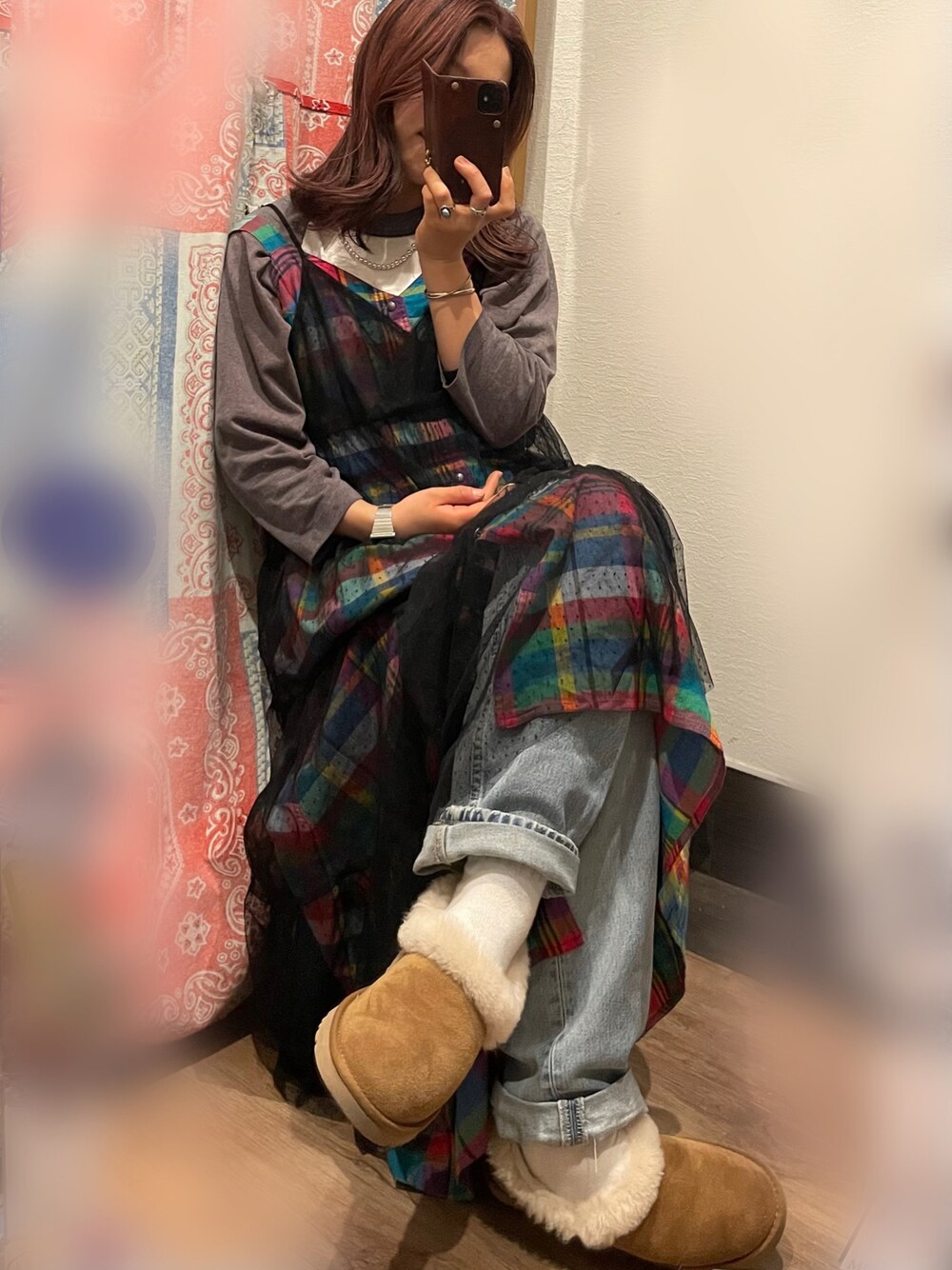 UGG以外は全部古着ビンテージ。 ・アクセサリー全てナバホ族インディアンジュエリー ・ラグランはMAZDA 4WDのビンテージ🩷 ・ワンピースも全てアメリカの古着です