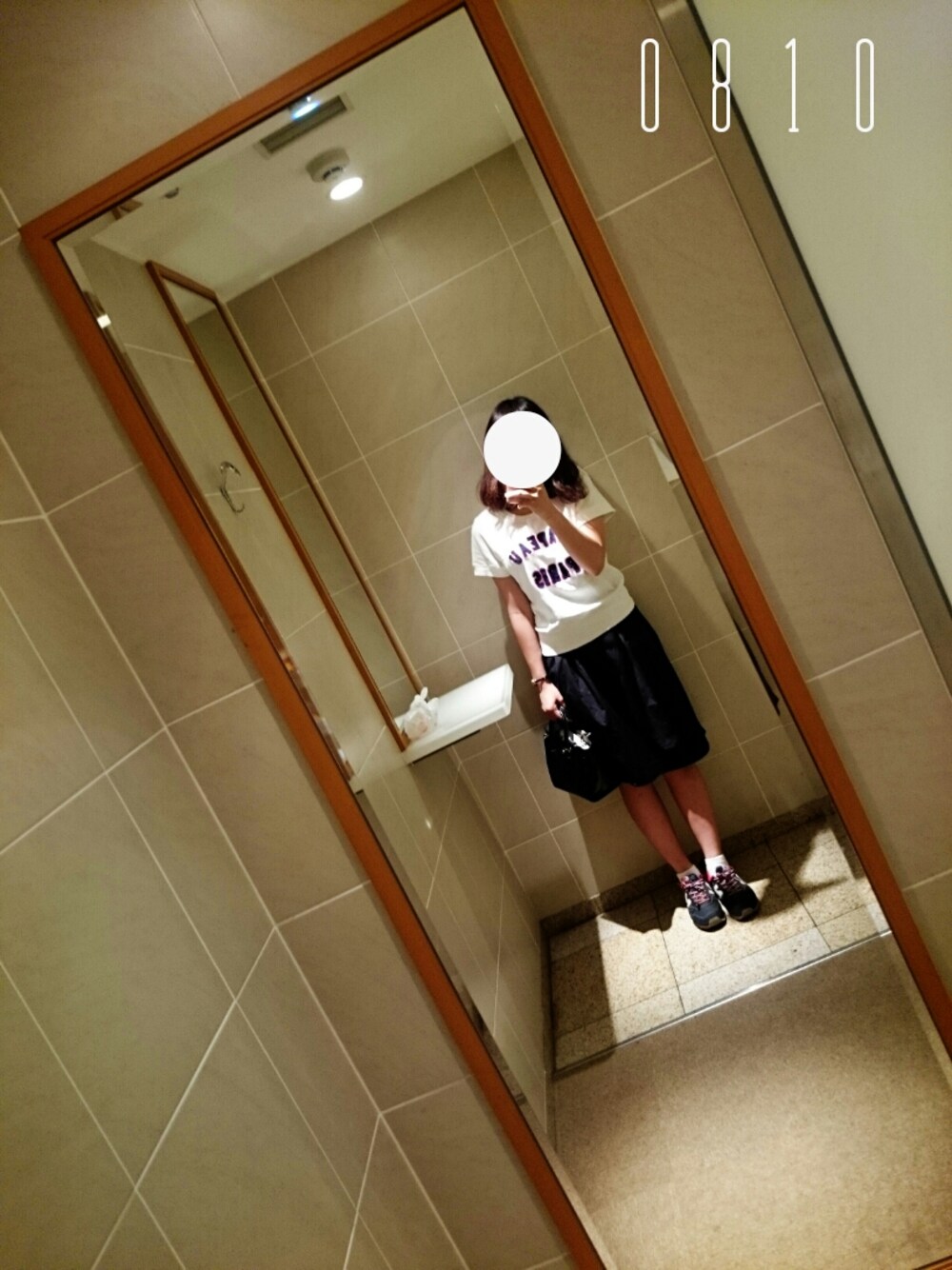 トップ:IENA SLOBE スカート:IENA SLOBE バッグ:nano universe スニーカー:New balance なんだか、実年齢より若く見える ゴミが写ってごめんなさい