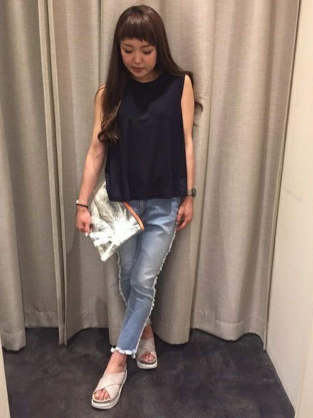 あゆみのTシャツ/カットソー「Aラインフレアノースリーブトップス」を使ったコーディネート