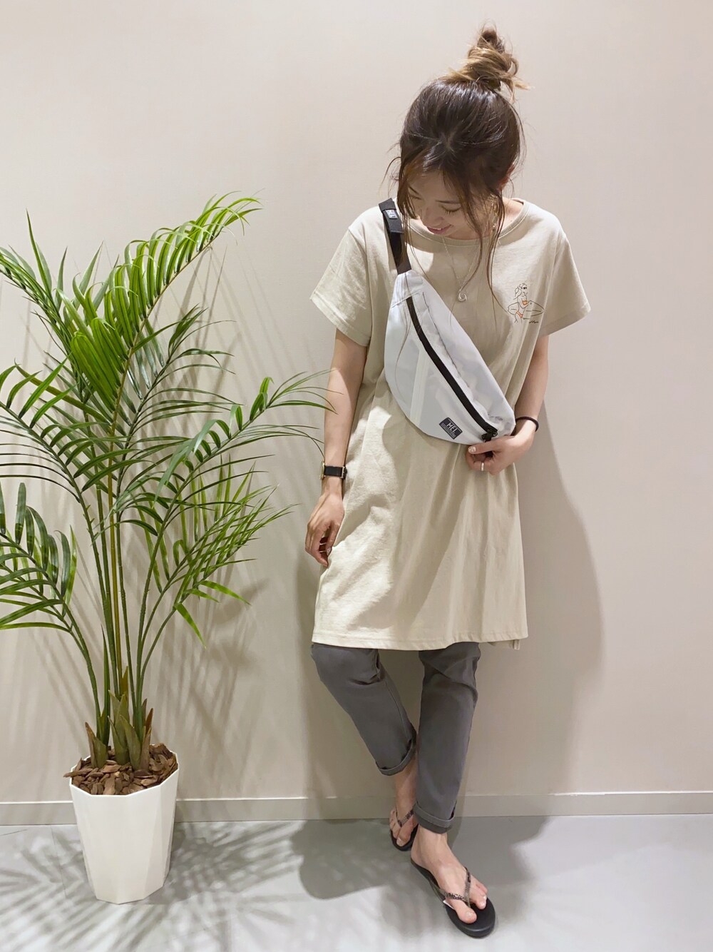 いつも観覧ありがとうございます🤍 サーフガールワンピースのラフコーデ🌿 胸元とワンポイントが可愛いワンピース✌︎ ワンサイズでゆったり着れるのが良いですよね🌻 テーパードパンツは、ストレッチ抜群‼︎ 是非checkしてみてください✌︎💛🤍
