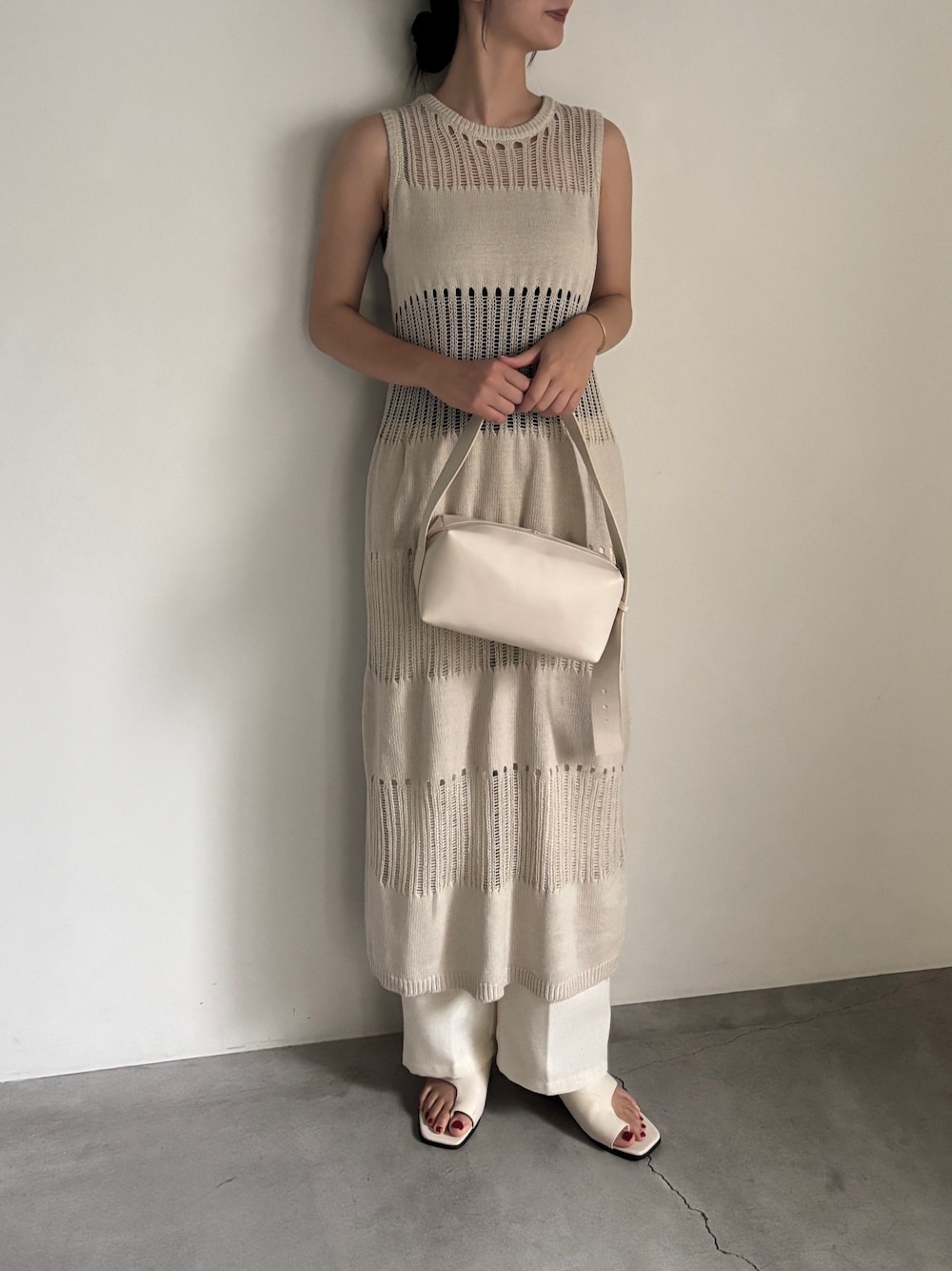 AYAME(MOCA office)のワンピース「【Et】Sheer-patterned knit One-piece」を使ったコーディネート