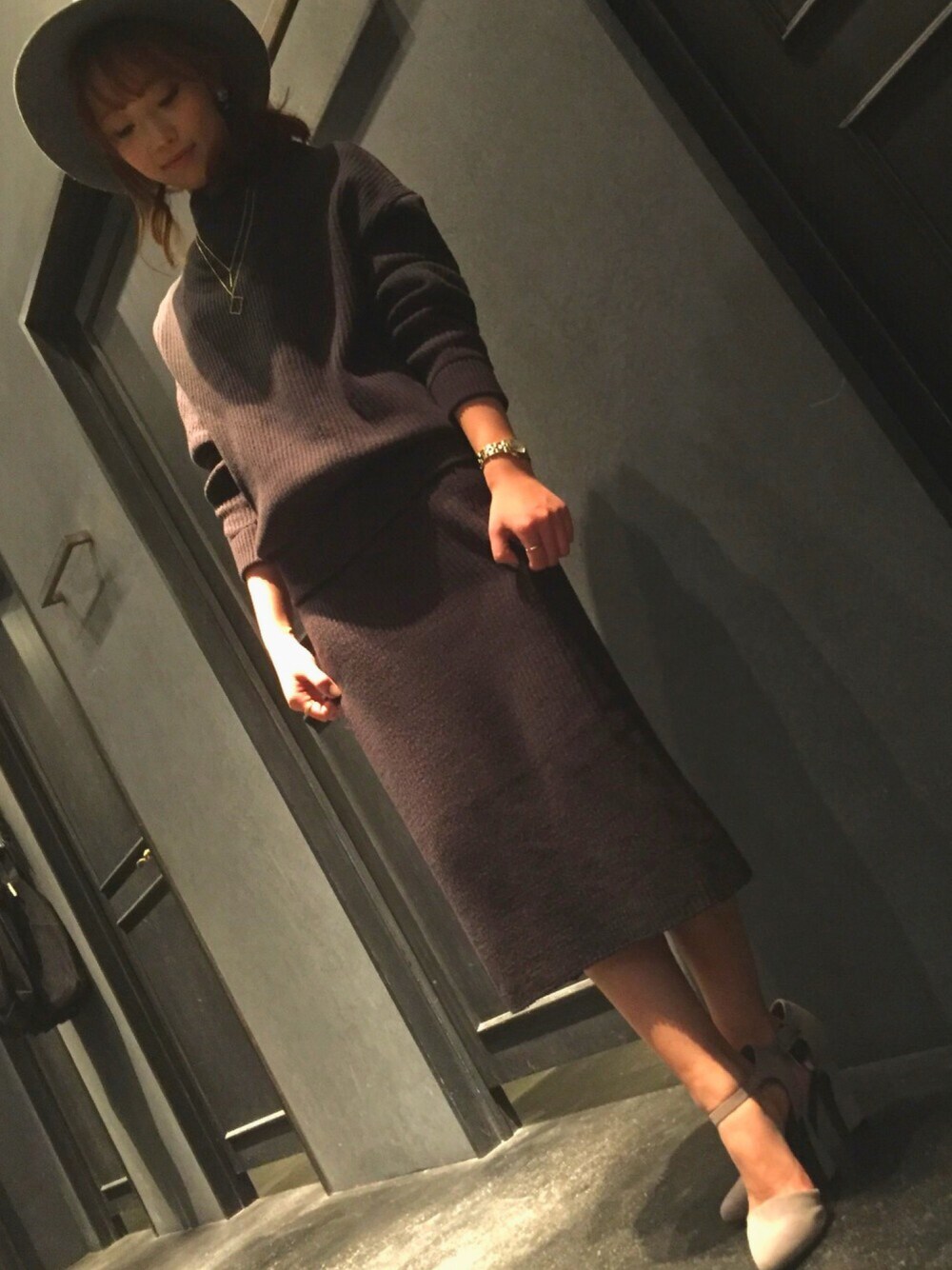 ニットのセットアップです✔️ 流行りのミモレ丈のタイトスカートに、ゆったりとしたシルエットのトップスが相性抜群*\(^o^)/* ダークカーキという、他と被らないお色も素敵です👄 また、上下が繋がっていないので、それぞれ違うアイテムとも組み合わせ可能です👏
