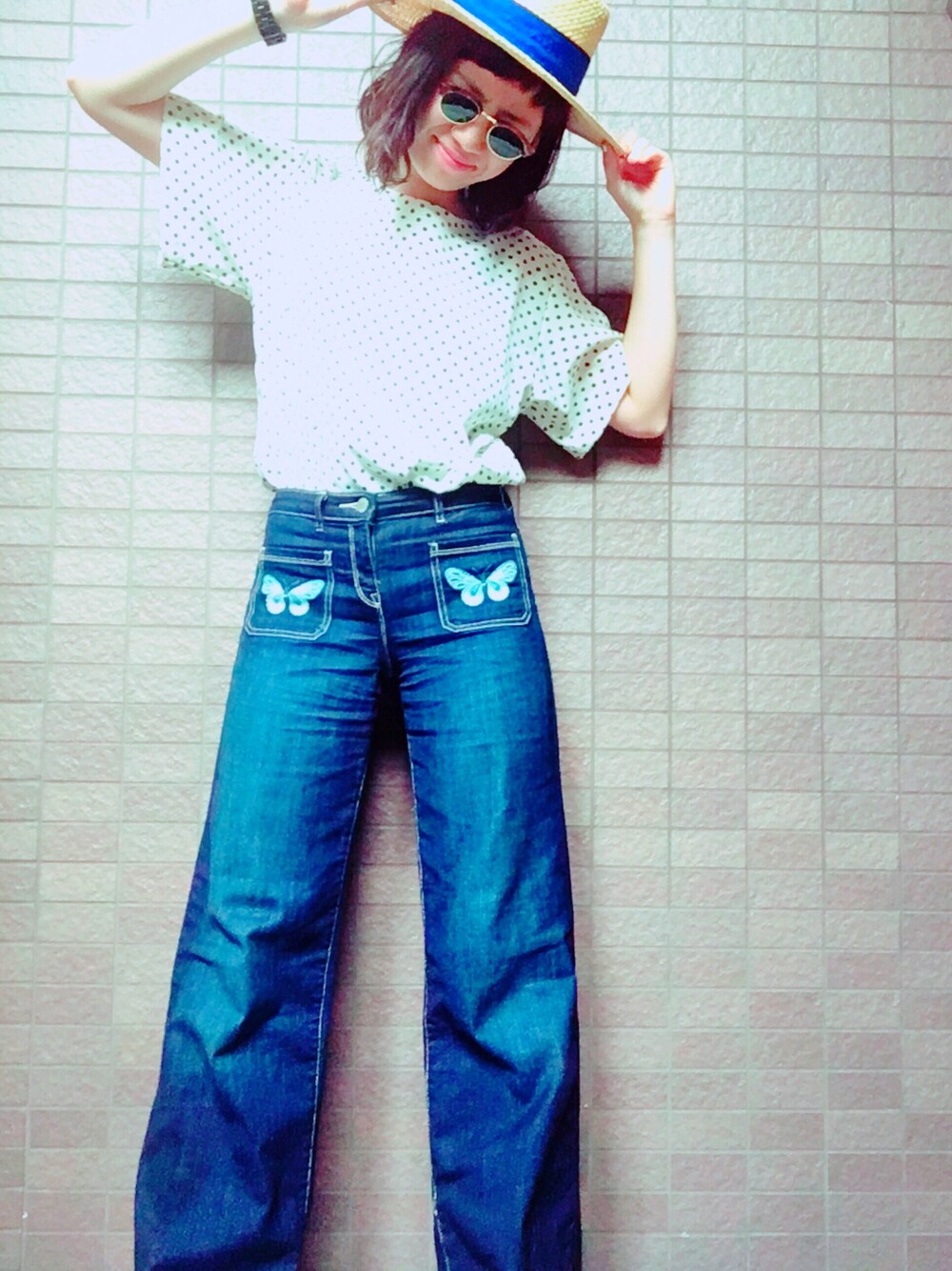 本日のテーマは海外セレブ風。 ワイドパンツ×水玉トップス×カンカン帽でパリジェンヌっぽく\(^o^)/\(^o^)/サングラスもかけて調子に乗りまくりました。笑 「どこの海外セレブかと思った」とか「グアム行ってこい」とか褒めてんのか貶されてるのかわからないコメントも頂きましたけど、オシャレは楽しんだもん勝ちじゃけえね!! ちょうちょ刺繍が可愛いワイドパンツはGAPkidsで買いました♡GAPとZARAのキッズはオトナでも全然使えるし、お値段もお手頃でオススメでっす 夏に向けてもっと攻めていこうと思いました〜