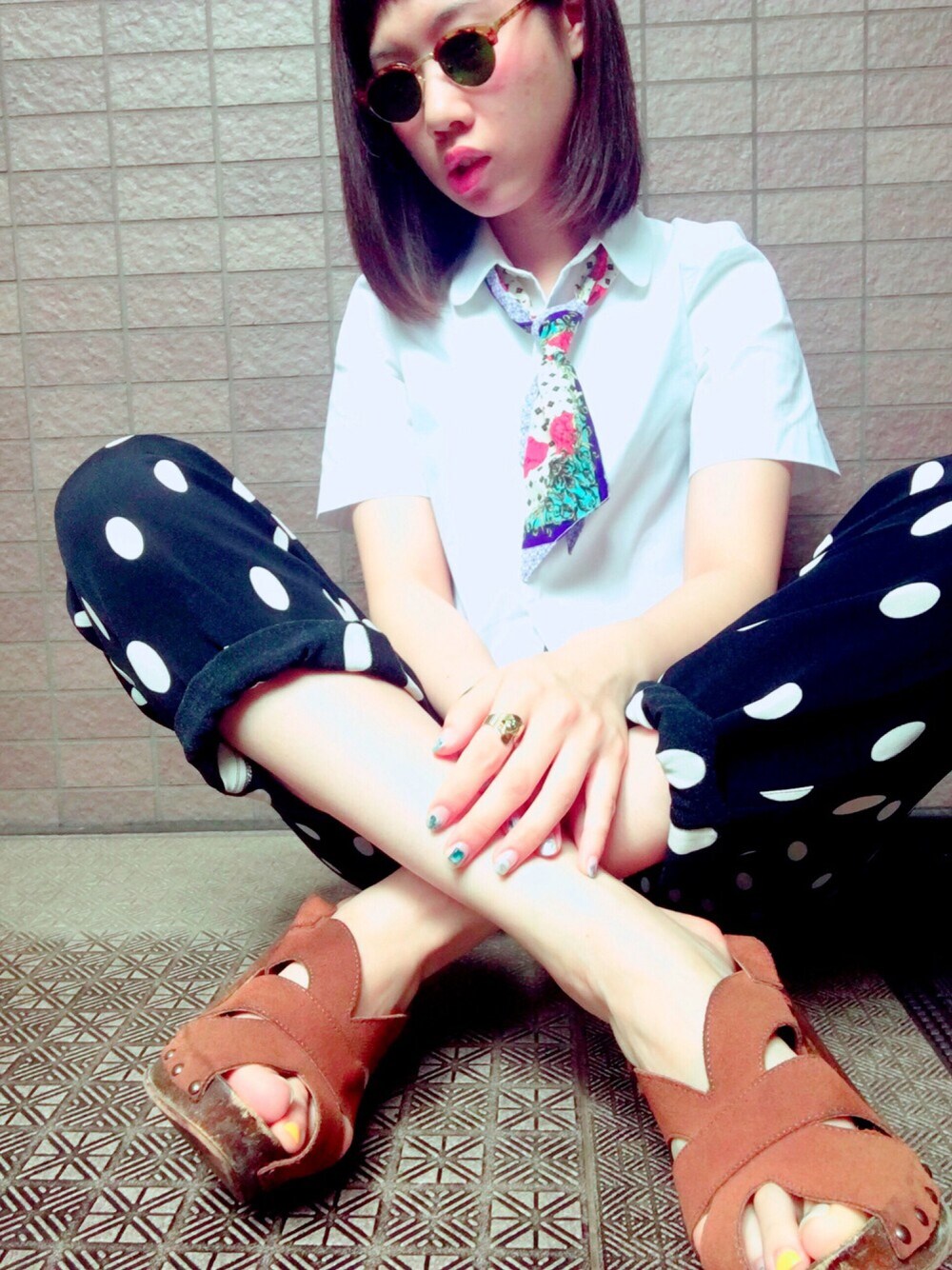 梅雨なんて吹き飛ばせ〜!!晴れ女だから雨の日もなんだかんだ天気よくなる🌞 古着屋さんで買ったヴェルサーチの水玉パンツをメインにシャツを合わせて、差し色にスカーフ巻いてモードっぽく。ちょっと柄 on 柄にもなってる。← この水玉パンツが超絶かわいくて…ハイウエストだし、水玉だし、しかもヴェルサーチだし最高かよ!!! それでは髪の毛切りにいってきます <3