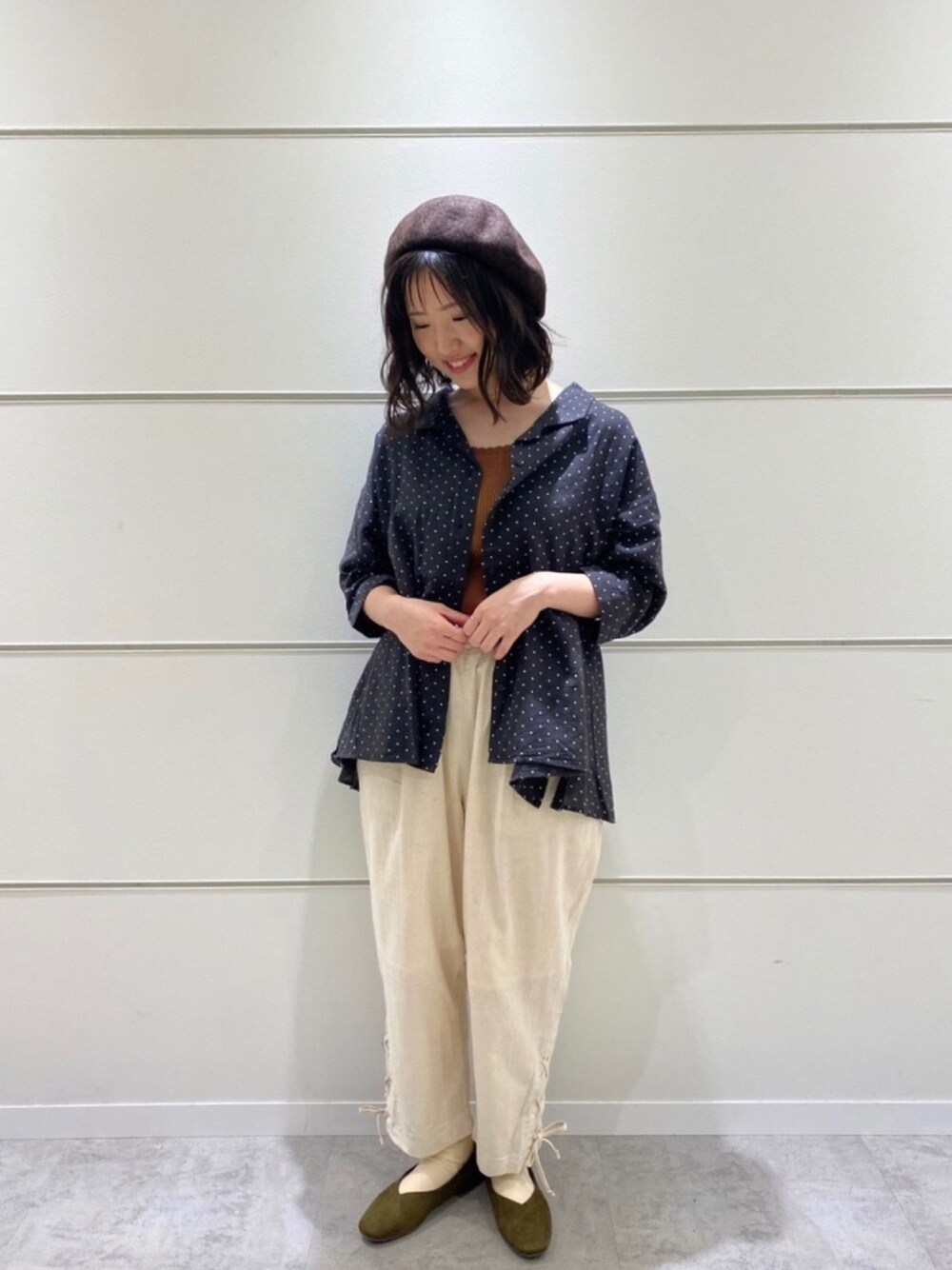 ご覧いただきありがとうございます🌷 裾がAラインになっていてシルエットが 可愛い開襟シャツo( >_< )o♡ カジュアルになりすぎず着て頂けます! 5分袖で首元も開きすぎていないので 1枚でも羽織としても🙆🏻♀️です!! 裾がレースアップデザインのパンツは 細みなので全体をスッキリまとめることが できます🦒