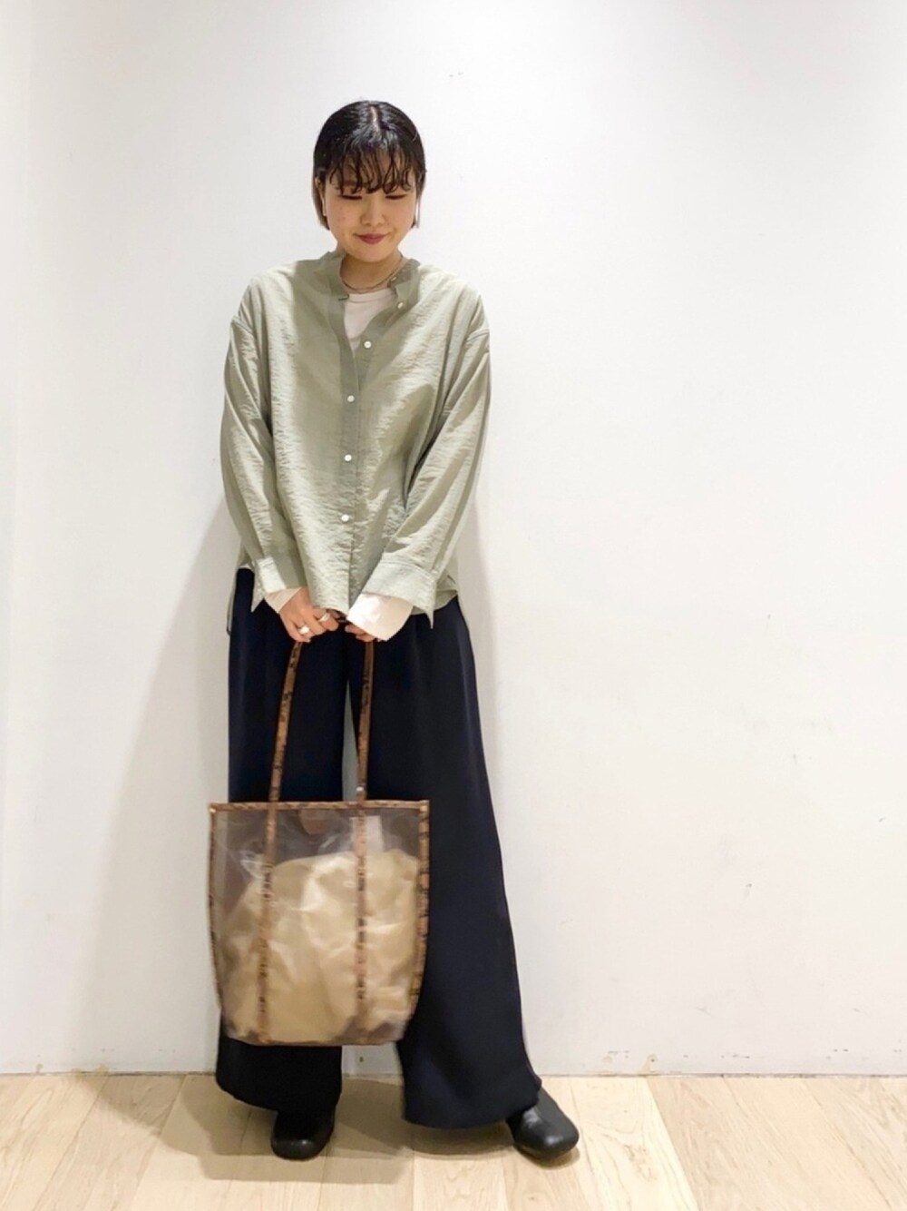 ウエマツ アユミのシャツ/ブラウス「シアーオーバーシャツ」を使ったコーディネート