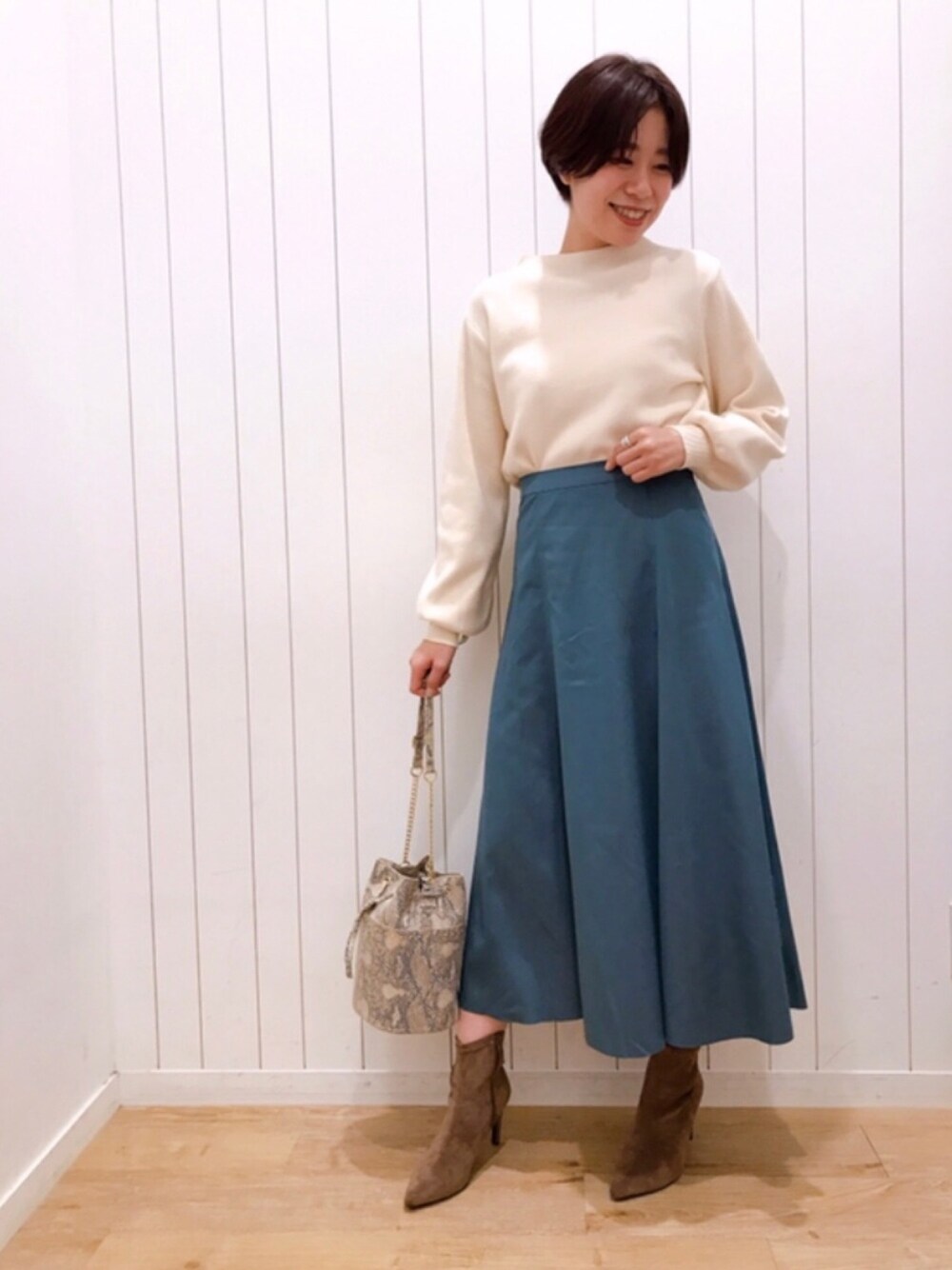 人気のニットを使ったスタイリング🧶 袖のボリュームとハイネックで オシャレ度もさらにアップ👑 寒くなるこれからの季節に着たい 万能ニットです⛄️