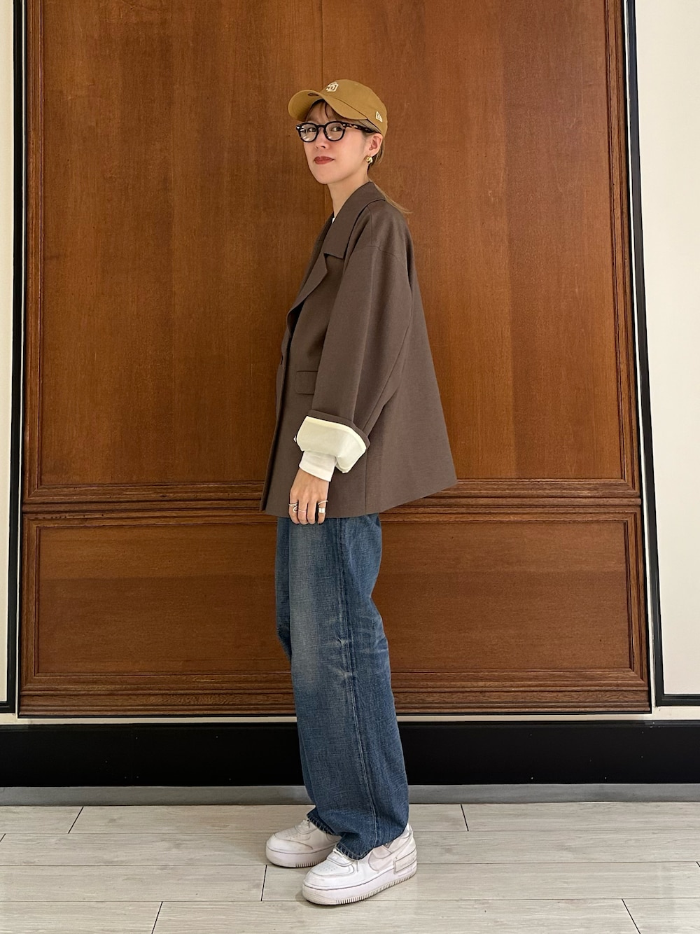 この秋はジャケット×めがねが気分🍂 NEWERAのキャップとスニーカーで カジュアルに落とし込みました👟🧢