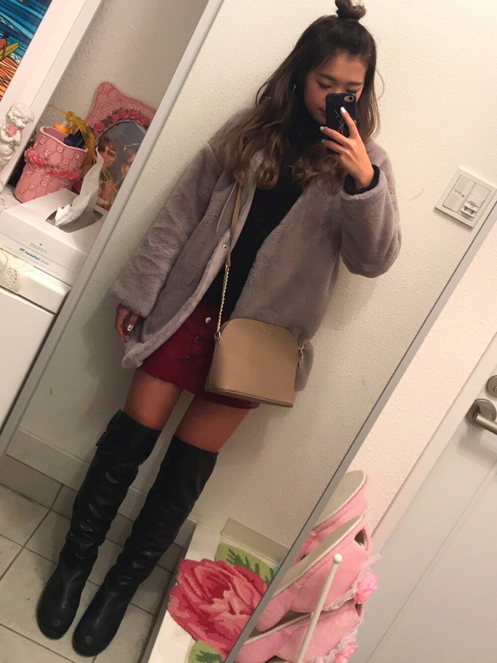 全部格安コーデ♡ アウター2600円 ニット 韓国で2000円 スカート h&m 1500円 ブーツ qoo10 1600円
