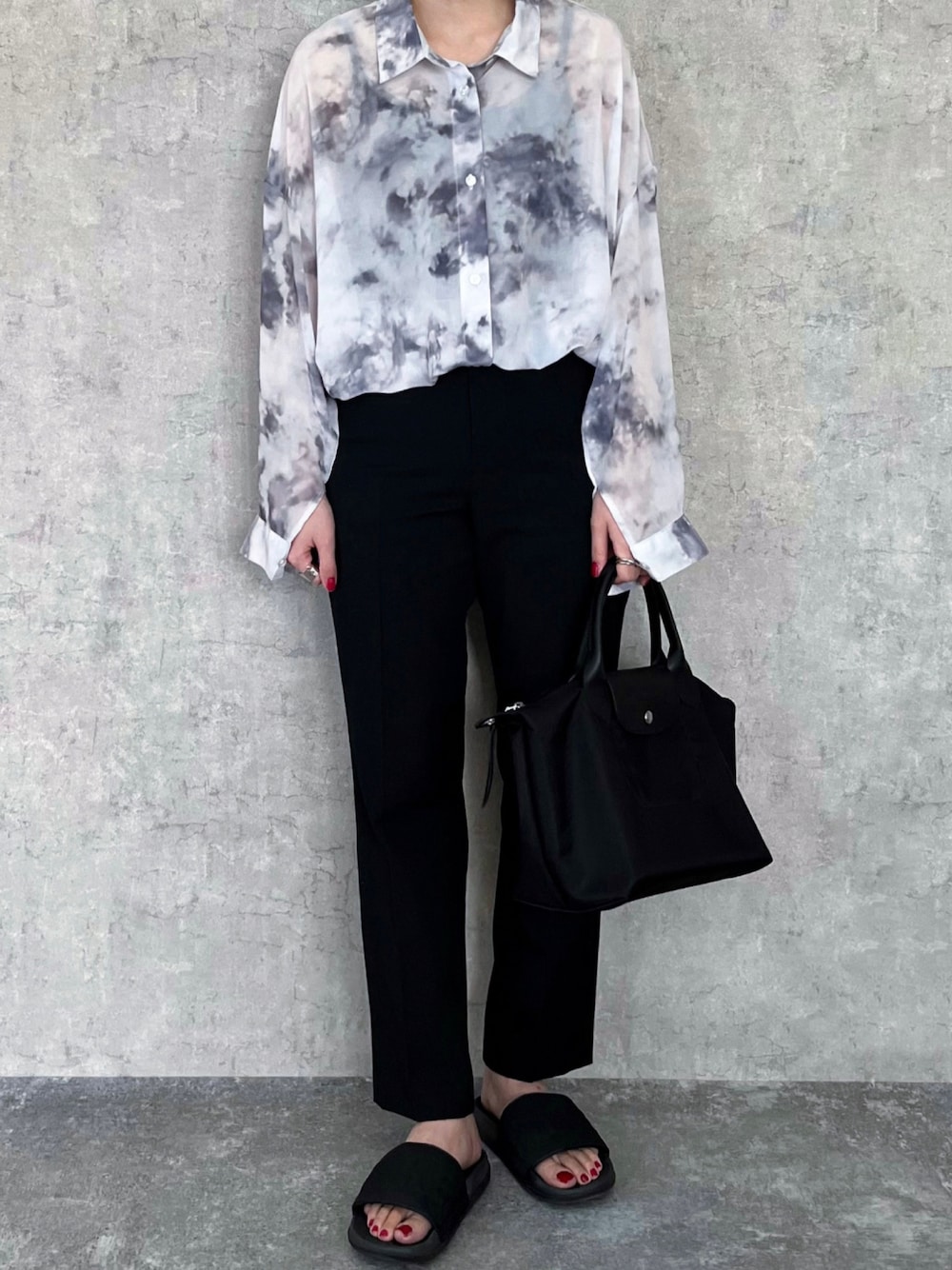 𝐩𝐨𝐧𝐢のシャツ/ブラウス「【Mayree】タイダイ オーバーサイズシースルーブラウス 2021SS」を使ったコーディネート