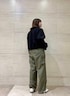アウターは見た目以上に軽く、丈は短めなのでスッキリとした印象になります◎ スニーカーは今回24.5cmを履いていますが、かかとが余るくらいあるので、24cmが丁度いいと思いました! 是非ご参考ください!