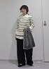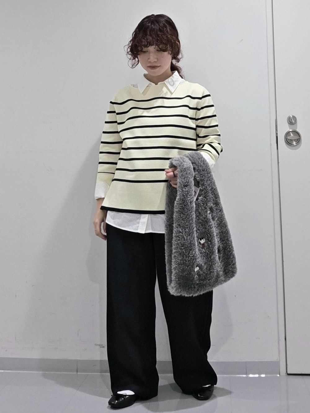 今ジャストで着れる秋スタイル。 シャツにレイヤードしているので、暑くなってきたら調節も可能です◎ 冬はこのスタイリングにアウターを重ねるだけ! 長く着ていただけるスタイリングです!