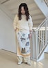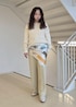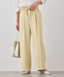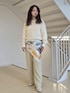 明るめのバターイエローがかわいいスタイリング。 一気に春らしさのあるコーディネートにしてくれるカラーです。 ホワイトのラメニットやスカーフをあわせて可愛すぎないスタイルに。