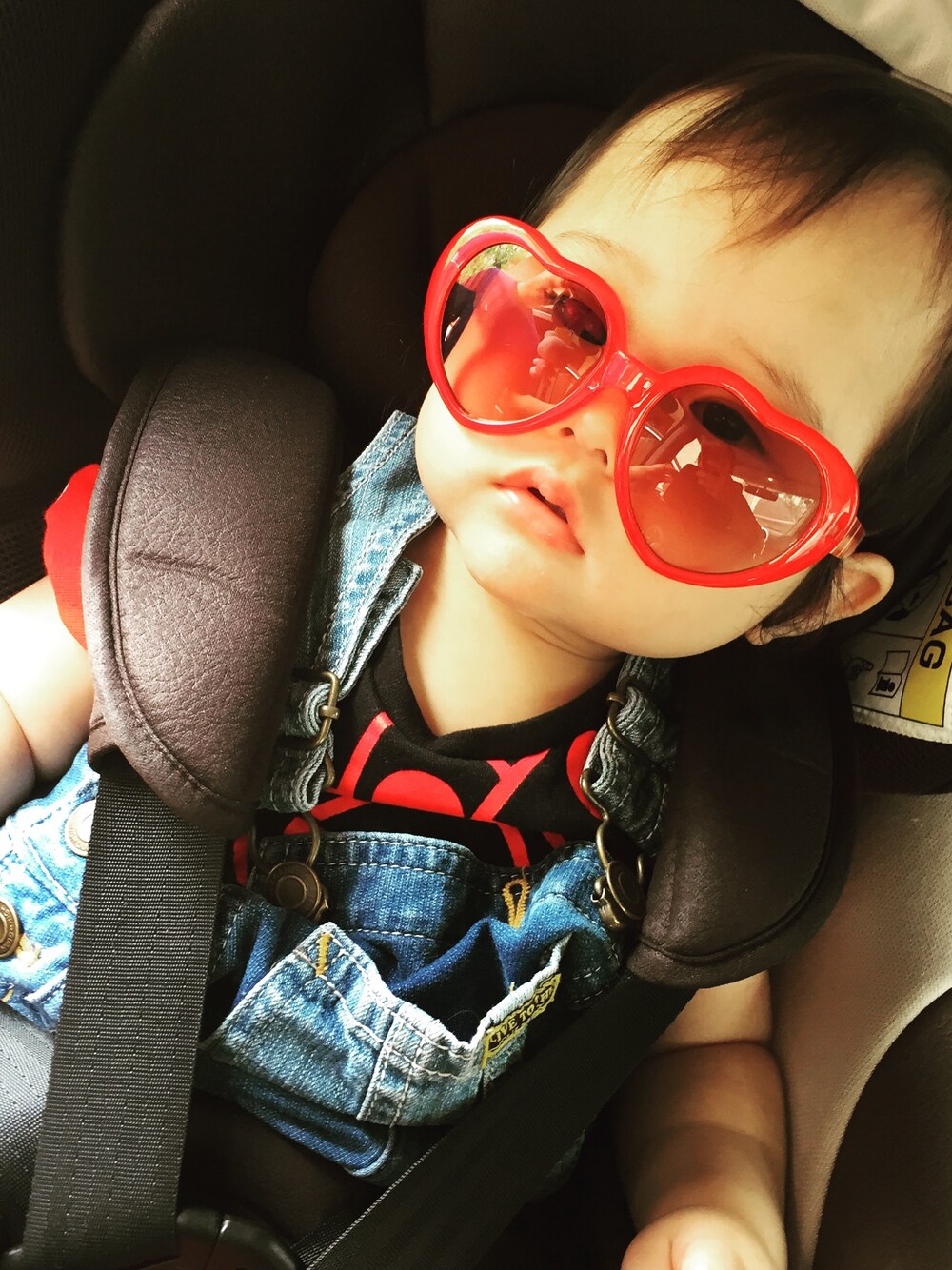 すずたん初めてのサングラス♡ ずっと探していた赤ハートのサングラス やっとゲットできました\(^^)/💕