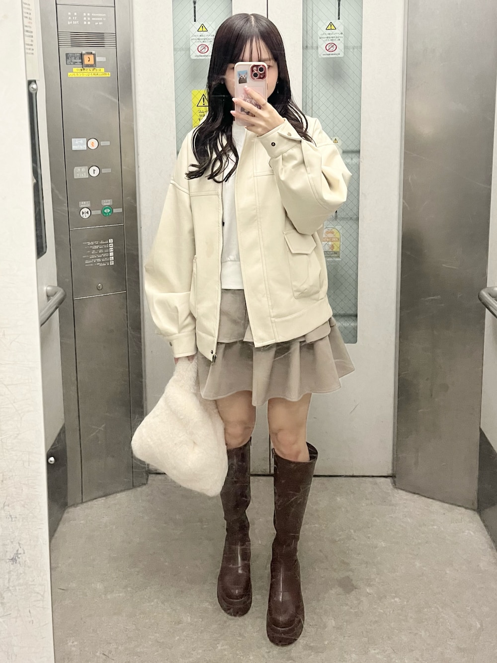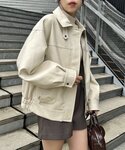 👶🏻のその他アウター「【SNS総再生回数300万回突破!】フェイクレザーミドルルーズジャケット」を使ったコーディネート