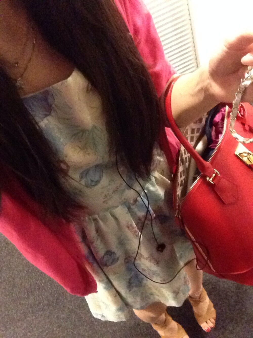 今日は、あったかいから お気に入りのdazzlinの花柄ワンピに ショッキングピンクのカーディガン♡